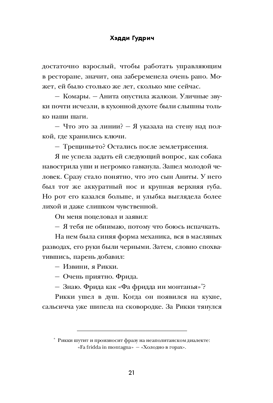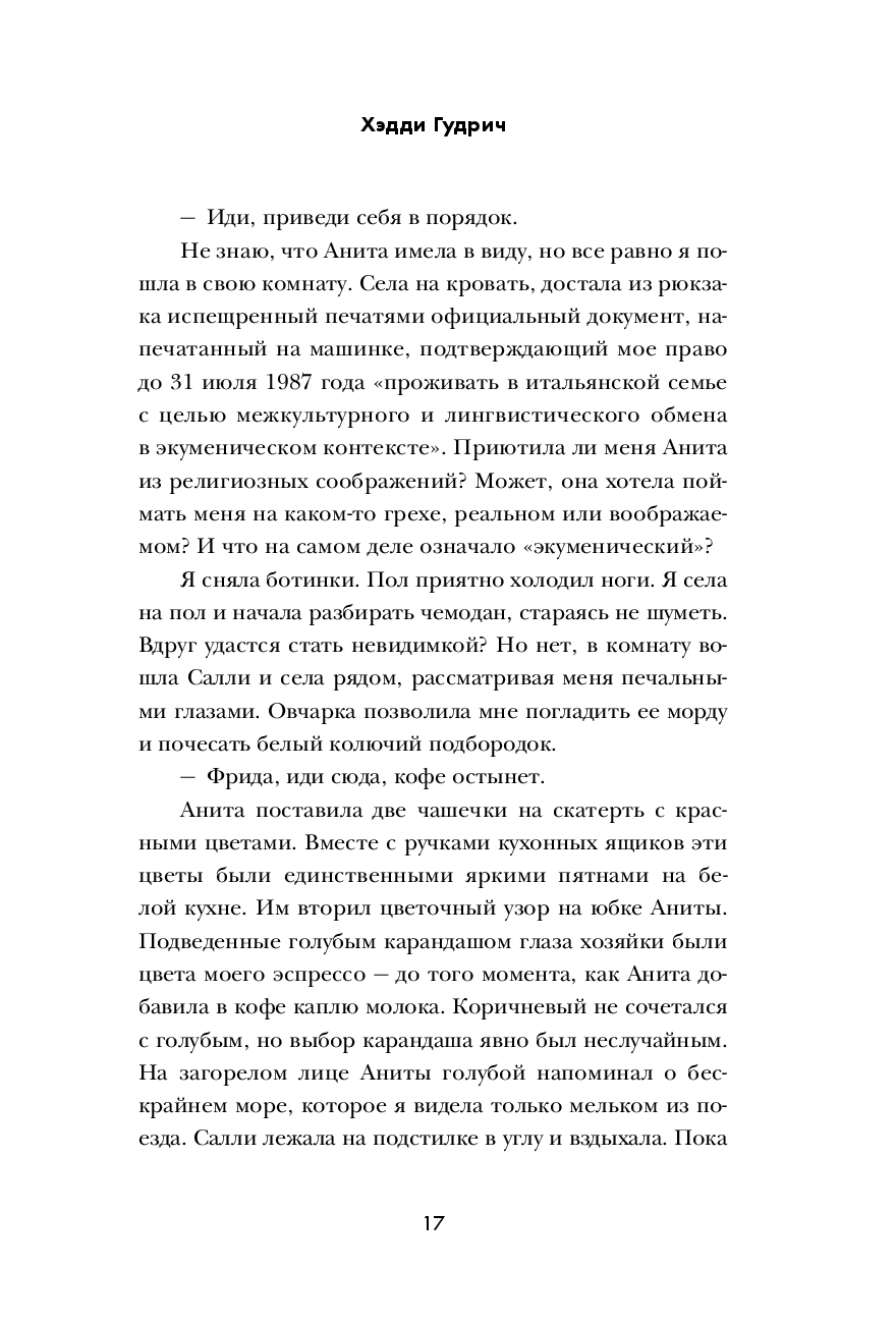 Фриде шестнадцать, она приезжает в Италию по программе обмена студентами. В Кастелламмаре-ди-Стабия, маленьком приморском городке, все случается с ней впервые. Изобилие красок, вкусов и запахов, бескрайнее небо и величие морских волн, разрезаемых подножием Везувия, многогранность человеческой страсти, ненависти и прощения – Фриде предстоит узнать этот мир по-настоящему.