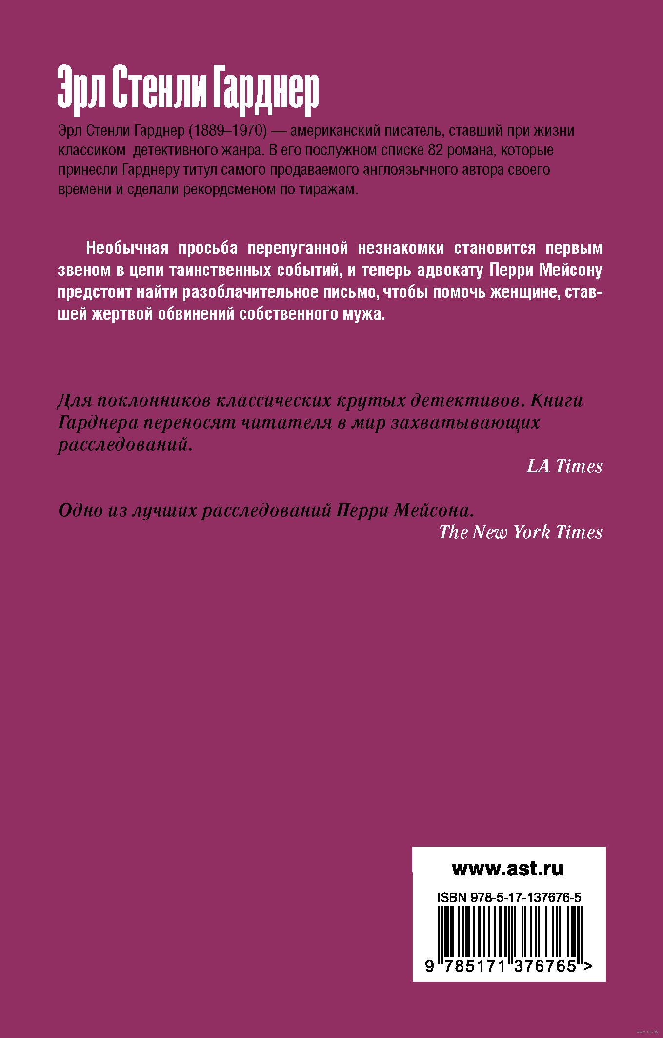 Необычная просьба перепуганной незнакомки становится первым звеном в цепи таинственных событий, и теперь адвокату Перри Мейсону предстоит найти разоблачительное письмо, чтобы помочь женщине, ставшей жертвой обвинений собственного мужа.