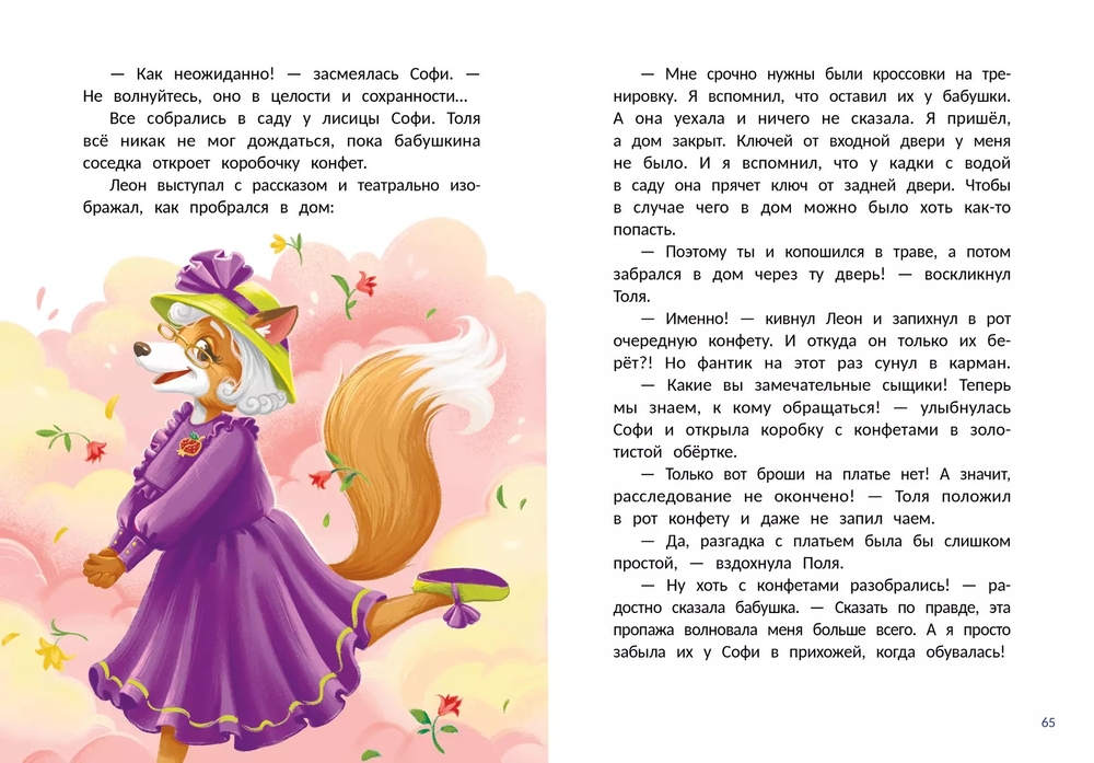 He успела бабушка Лоренция переехать, как в её дом проникли воры. Может, у старых хозяев остался ключ? Или же ограбить хотели именно их? За дело берутся внуки Лоренции – храбрые еноты Толя и Поля. Ведь кража более чем странная: пропала брошь из самоцветов и коробка конфет. И у юных сыщиков уже есть первый подозреваемый – соседский лис Леон, который мусорит обёртками от точно таких же конфет.