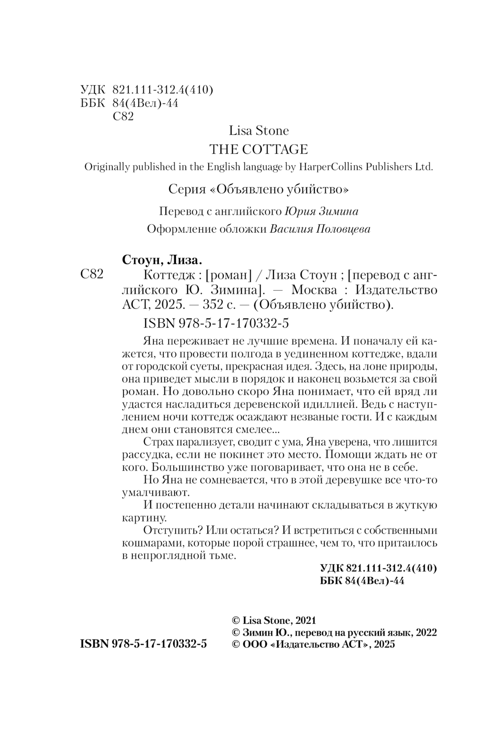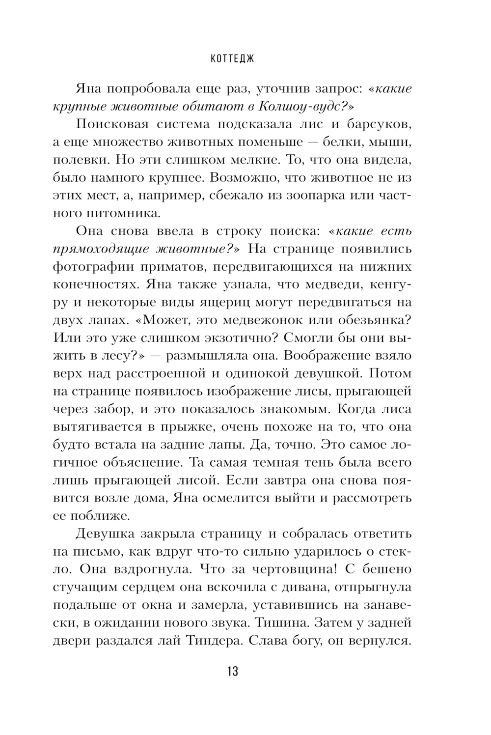 Яна переживает не лучшие времена. И поначалу ей кажется, что провести полгода в уединенном коттедже, вдали от городской суеты, прекрасная идея. Здесь, на лоне природы, она приведет мысли в порядок и наконец возьмется за свой роман. Но довольно скоро Яна понимает, что ей вряд ли удастся насладиться деревенской идиллией. Ведь с наступлением ночи коттедж осаждают незваные гости. И с каждым днем они становятся смелее...