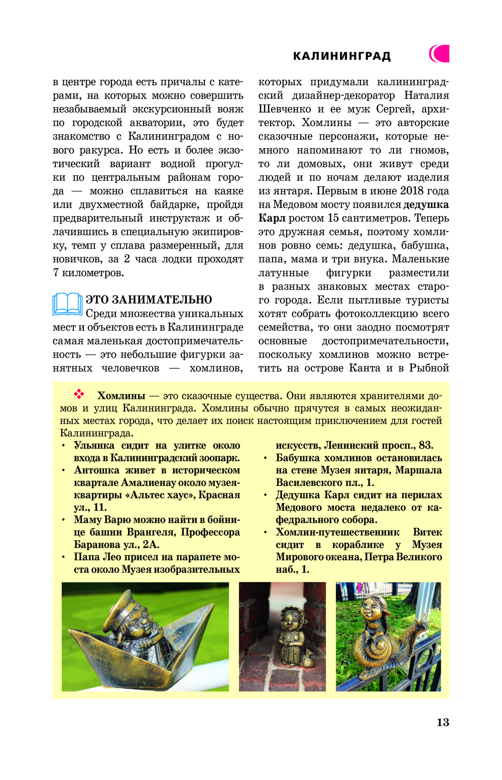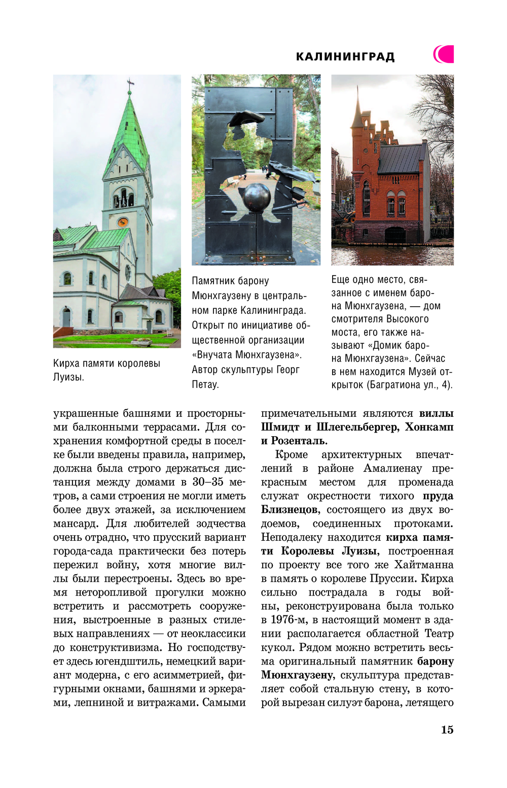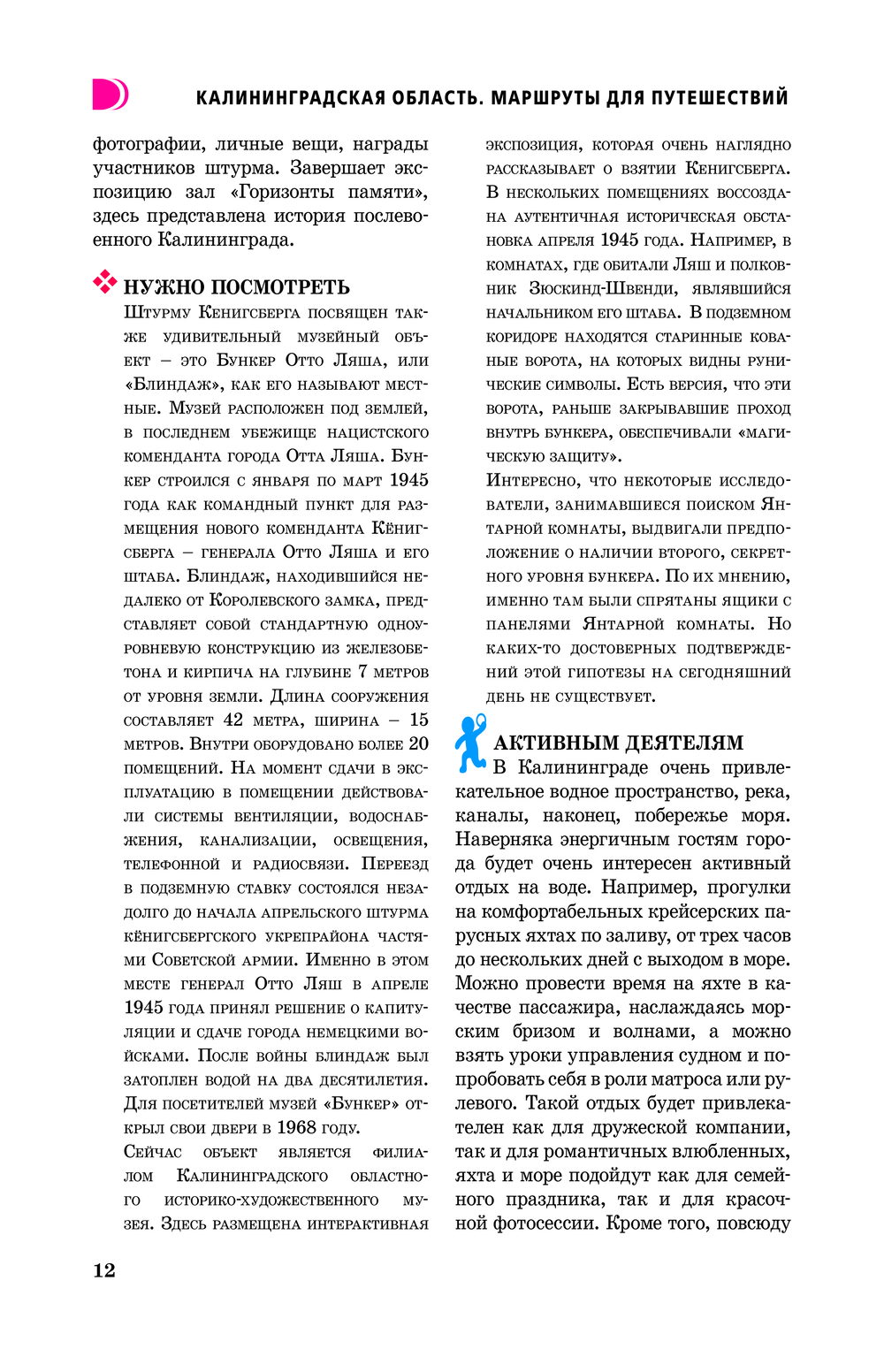 Предложенные в начале глав книги QR-коды с переходом на карты с маршрутами, значительно облегчат ориентирование. С нашим путеводителем за меньшее количество времени вы увидите больше в Калининграде, Светлогорске, Зеленоградске, Балтийске, Янтарном, Гвардейске и на Куршской косе. Старые форты и современные музеи, уникальные природные достопримечательности и сувениры – обо всем этом в книге небольшого формата в мягкой обложке, что позволит вам взять издание с собой в путешествие.