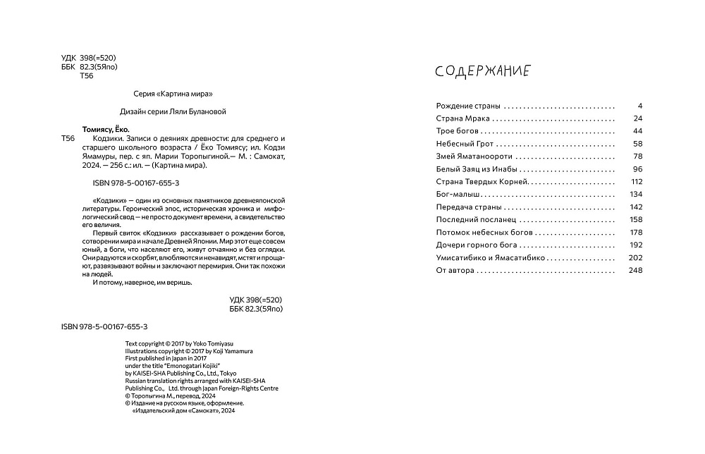 Первый свиток "Кодзики" рассказывает о рождении богов, сотворении мира и начале Древней Японии. Мир этот еще совсем юный, а боги, что населяют его, живут отчаянно и без оглядки. Они радуются и скорбят, влюбляются и ненавидят, мстят и прощают, развязывают войны и заключают перемирия. Они так похожи на людей.