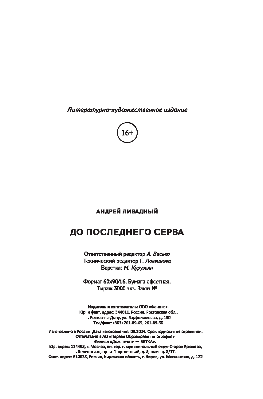 | Изготовитель | ЗАО "Издательство "Феникс". 190000, РФ, г. Санкт-Петербург, пер. Антоненко, 2 |