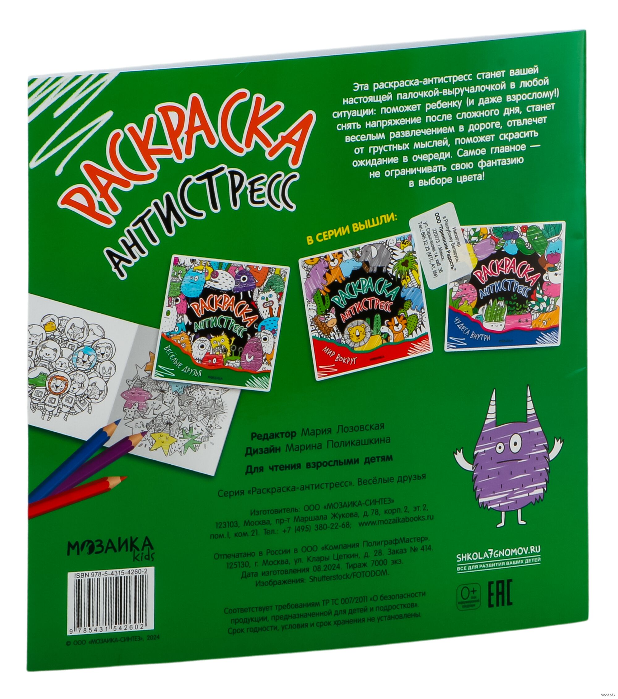 Книга "Веселые друзья" серии "Раскраска-антистресс" – это необычная раскраска, которая поможет занять ребенка в дороге или в очереди, снять напряжение после насыщенного дня, отвлечь от грустных мыслей и просто весело провести время. Забавные рисунки с мелкими деталями и яркими героями точно понравятся ребенку (да и взрослому тоже!). Главное – иметь под рукой коробку разноцветных карандашей!