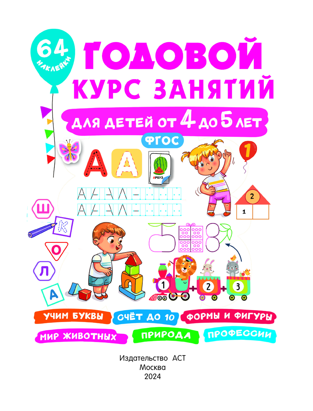 Годовой курс занятий для детей от 4 до 5 лет. 64 наклейки