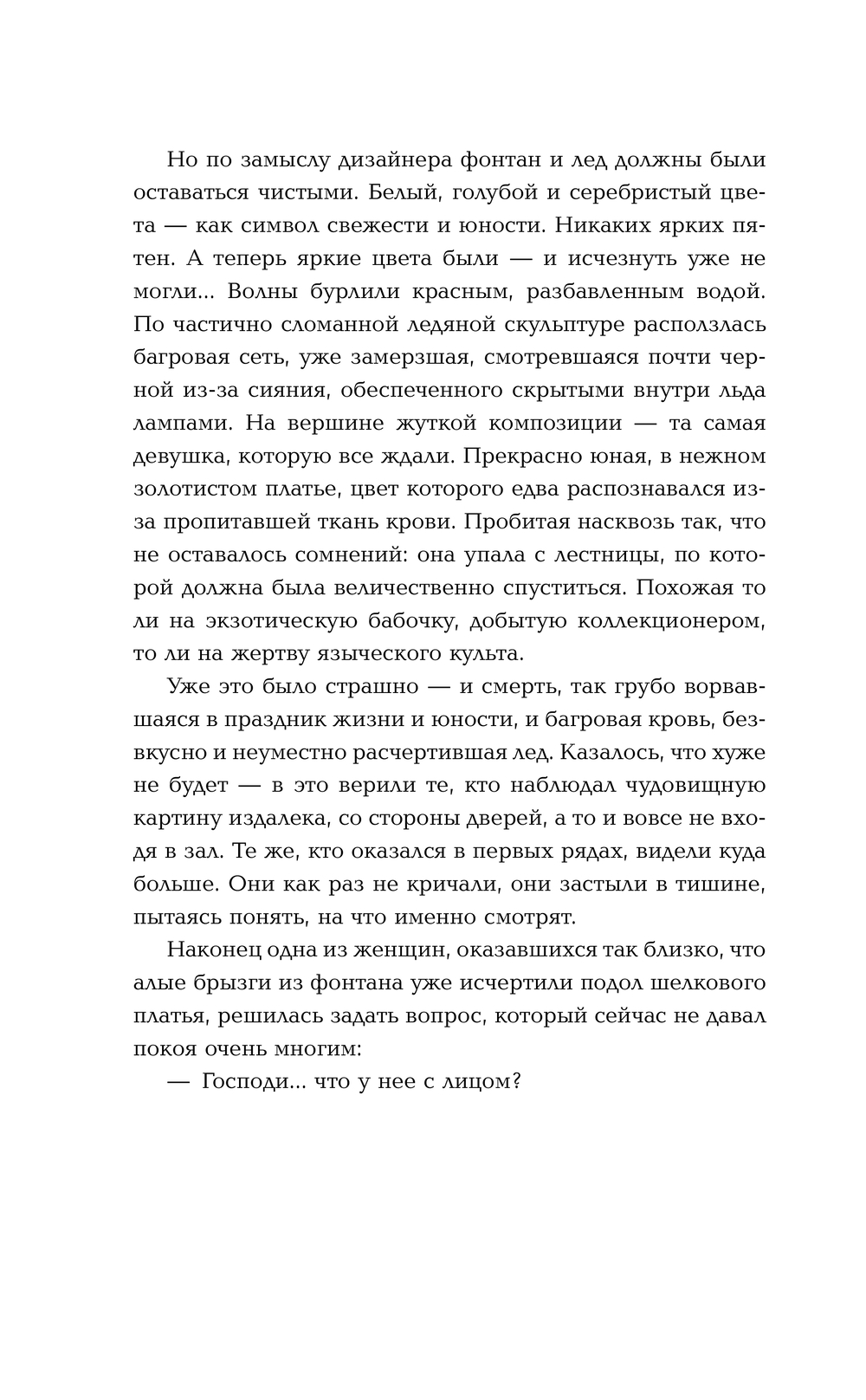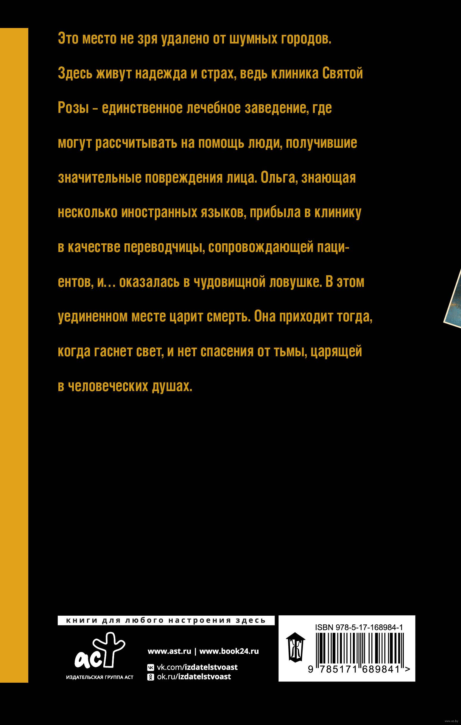 Это место не зря удалено от шумных городов. Здесь живут надежда и страх, ведь клиника Святой Розы – единственное лечебное заведение, где могут рассчитывать на помощь люди, получившие значительные повреждения лица. Ольга, знающая несколько иностранных языков, прибыла в клинику в качестве переводчицы, сопровождающей пациентов, и... оказалась в чудовищной ловушке. В этом уединенном месте царит смерть. Она приходит тогда, когда гаснет свет, и нет спасения от тьмы, царящей в человеческих душах.