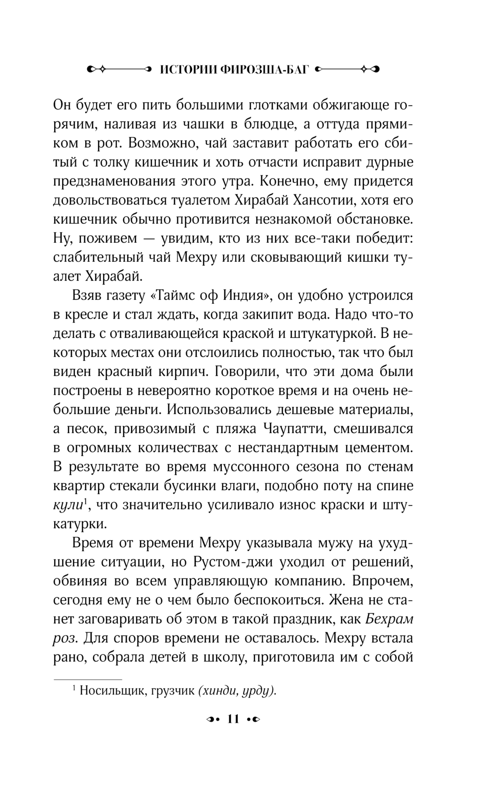 Это одиннадцать правдивых и ироничных историй, героями которых стали жители одного из районов Бомбея – Фирозша-Баг, – почтальоны и торговцы, старики и дети, священники и студенты.