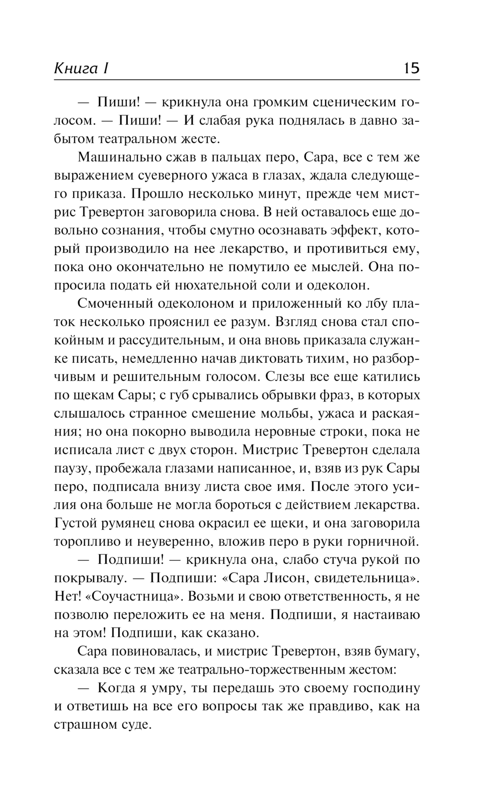 Что скрывала она ото всех до самой смерти и в чем сумела признаться только на смертном одре, продиктовав послание своей горничной Саре Лисон? Почему Сара не находит смелости отнести письмо своему господину, а прячет его в одной из заброшенных комнат и тут же покидает дом? И почему через шестнадцать лет она пытается помешать Розамонде вернуться в дом детства и войти в комнату?