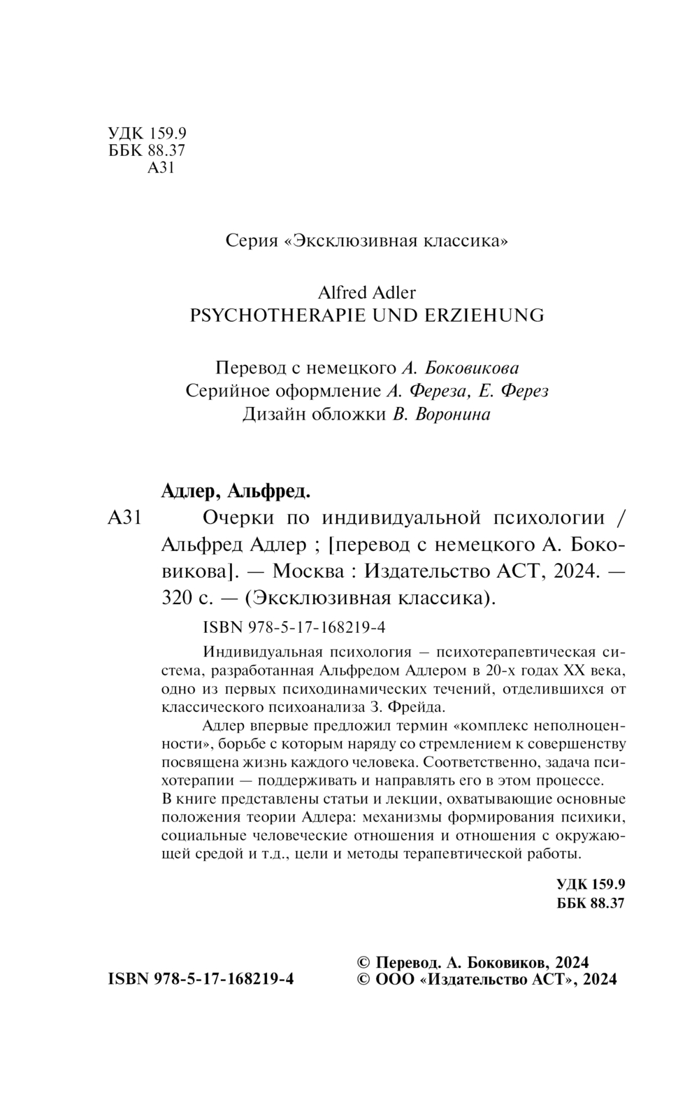 В книге представлены статьи и лекции, охватывающие основные положения теории Адлера: механизмы формирования психики, социальные человеческие отношения и отношения с окружающей средой и т.д., цели и методы терапевтической работы.