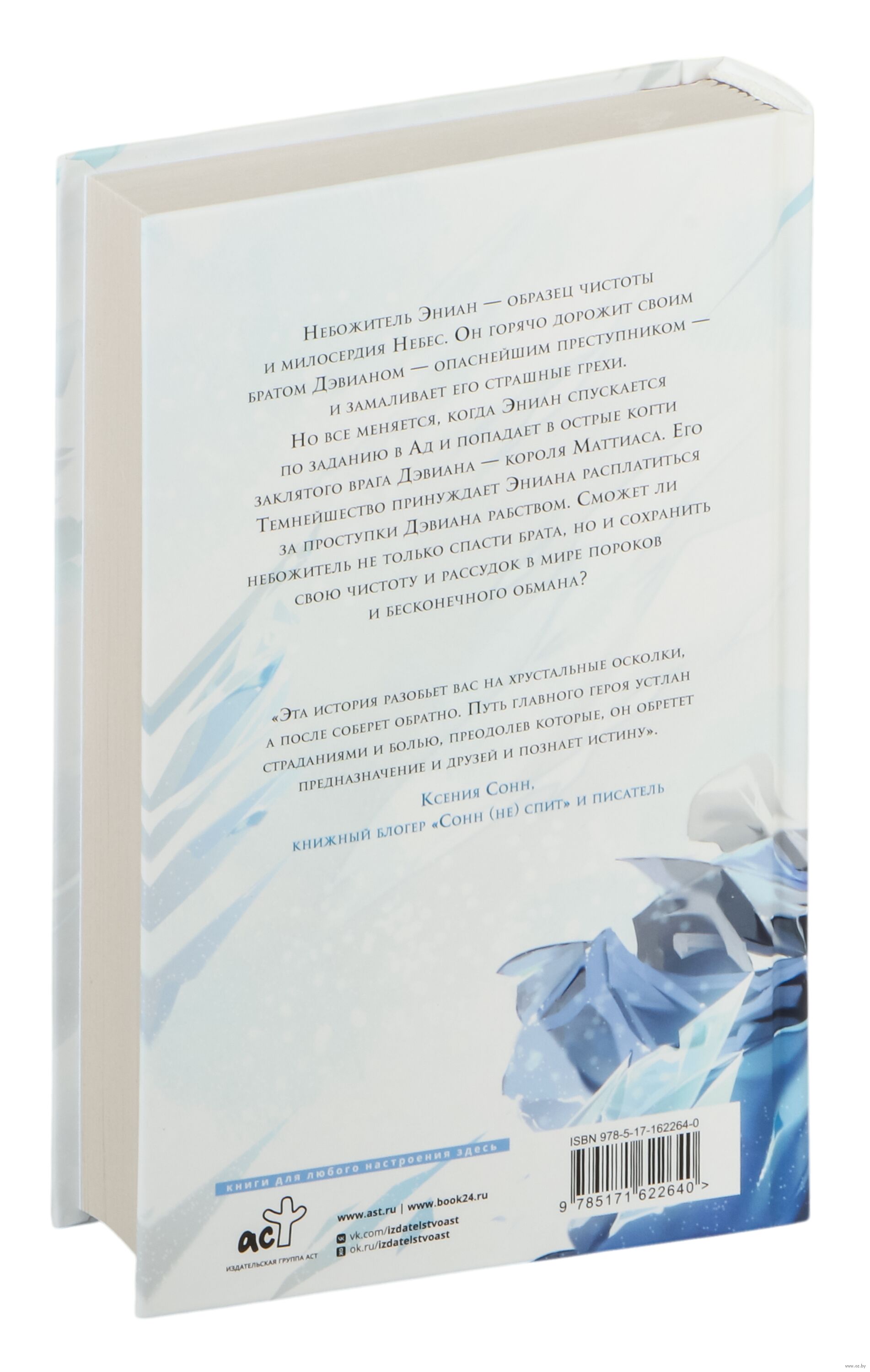 Но все меняется, когда Эниан спускается по заданию в Ад и попадает в острые когти заклятого врага Дэвиана – короля Маттиаса. Его Темнейшество принуждает Эниана расплатиться за проступки Дэвиана рабством. Сможет ли небожитель не только спасти брата, но и сохранить свою чистоту и рассудок в мире пороков и бесконечного обмана?