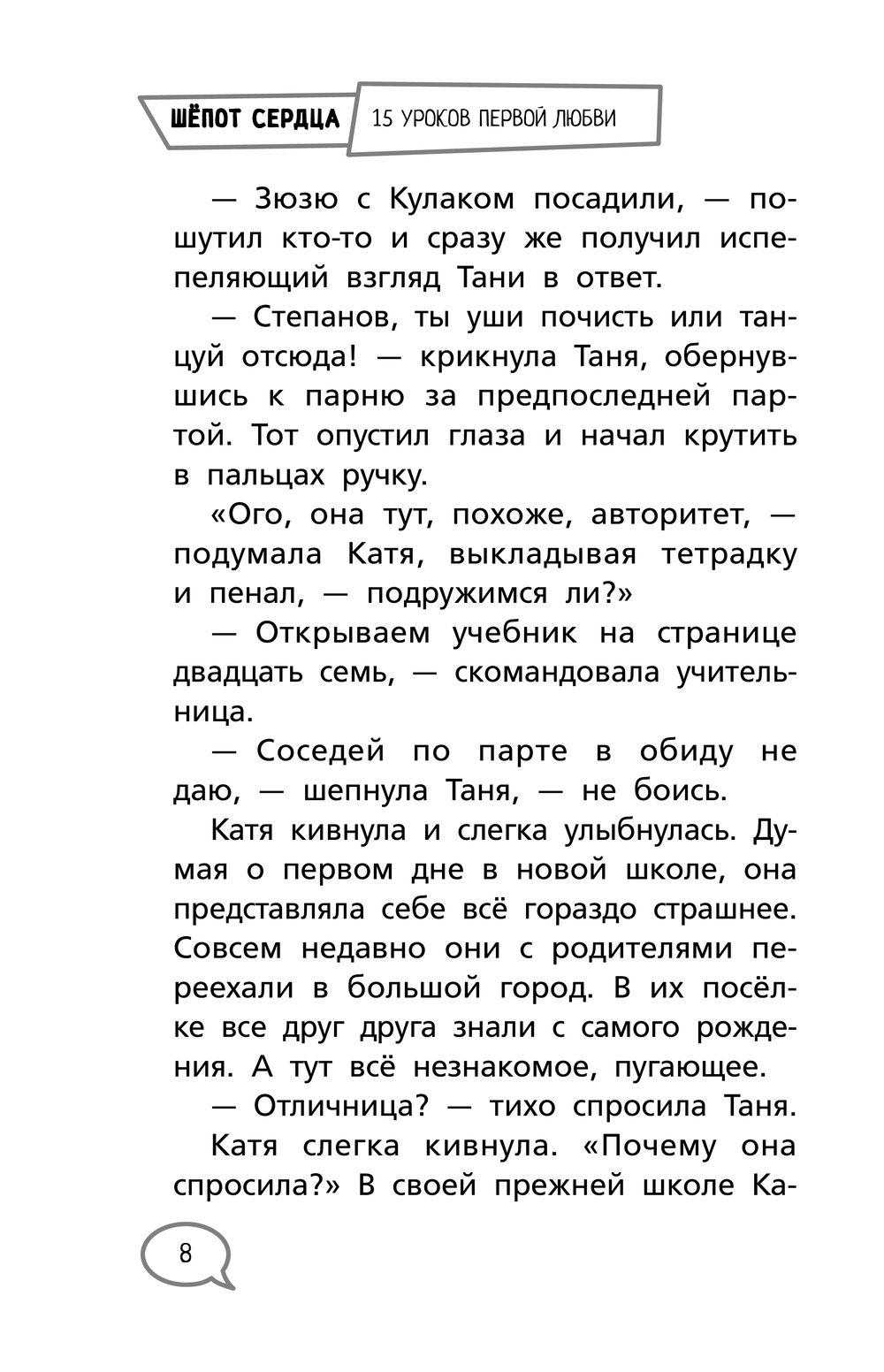 Первая любовь – это психологический ресурс или непростые воспоминания, к которым не хочется возвращаться. Главная героиня – ранимая, нежная натура, попадает в новый коллектив. Он – отличник, гордость школы, подающий большие надежды футболист. Что может быть у них общего? Смогут ли они преодолеть сплетни и интриги, неурядицы в семье и тяжёлые физические травмы? Смогут ли создать свою сказку, которая не будет длиться долго и счастливо, но навсегда превратится в бальзам для души? Книга "Шёпот сердца" показывает, как экологично пережить первую влюблённость, мечты и разочарования. Азбука личных отношений опытного психолога – надёжная защита в разных жизненных ситуациях. Иллюстрации в стиле комиксов сделают чтение ещё интереснее.