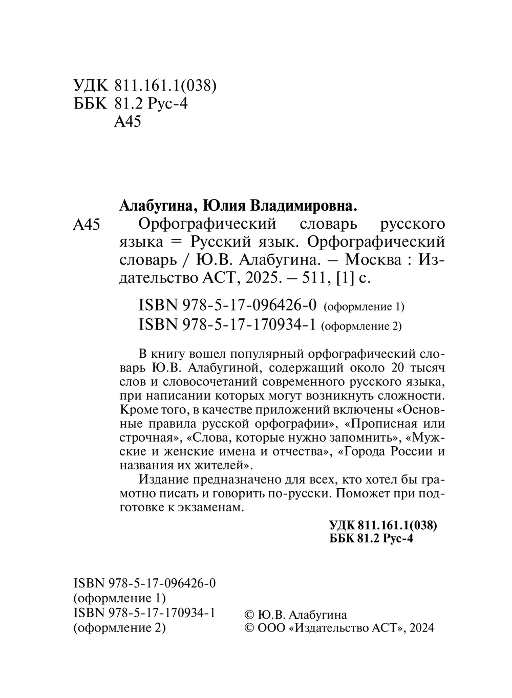 Издание дополнено полезными приложениями: "Основные правила русской орфографии", "Прописная или строчная", "Слова, которые нужно запомнить (словарные слова)", "Мужские имена, отчества", "Женские имена" и "Города России и названия их жителей".