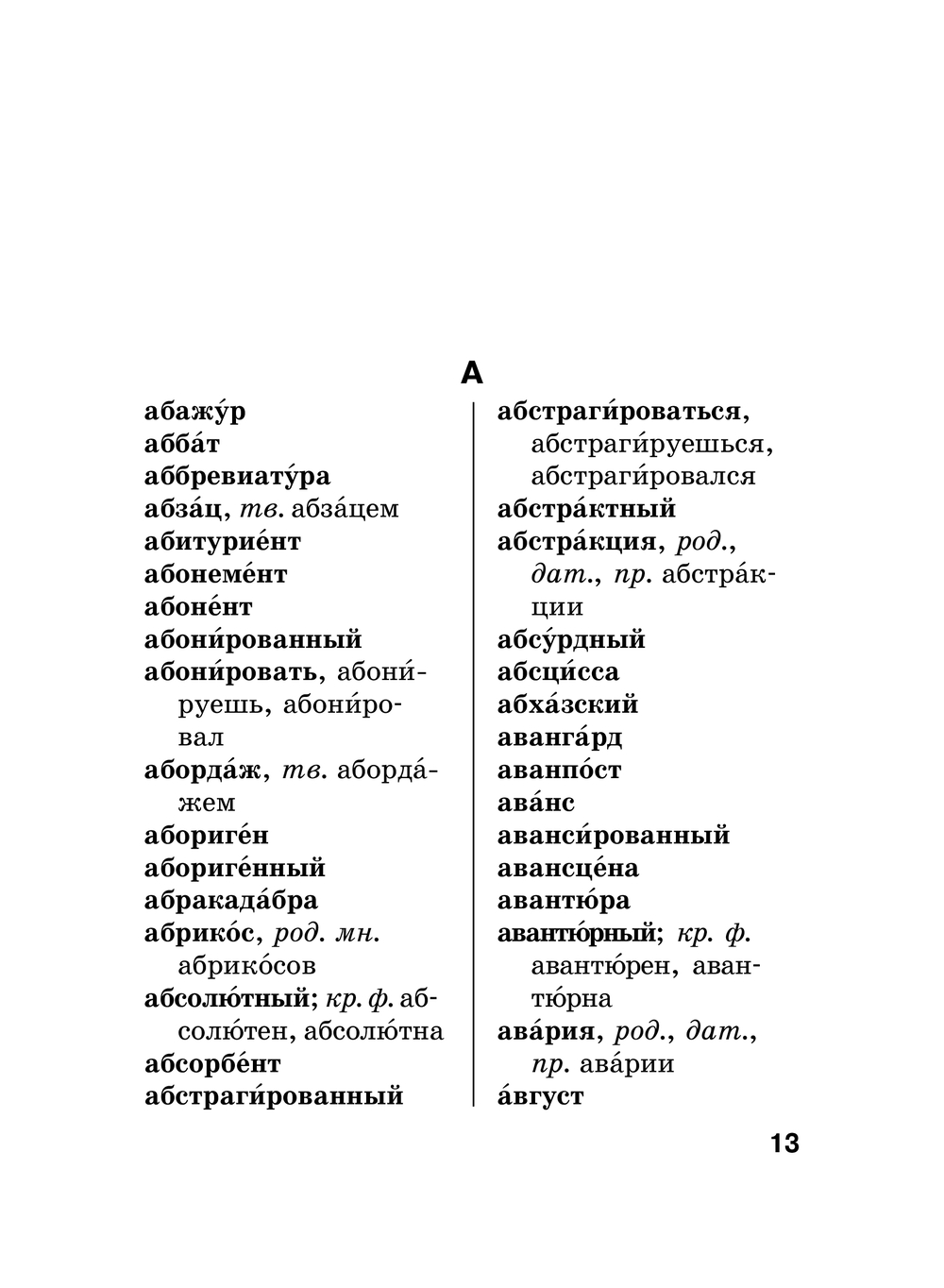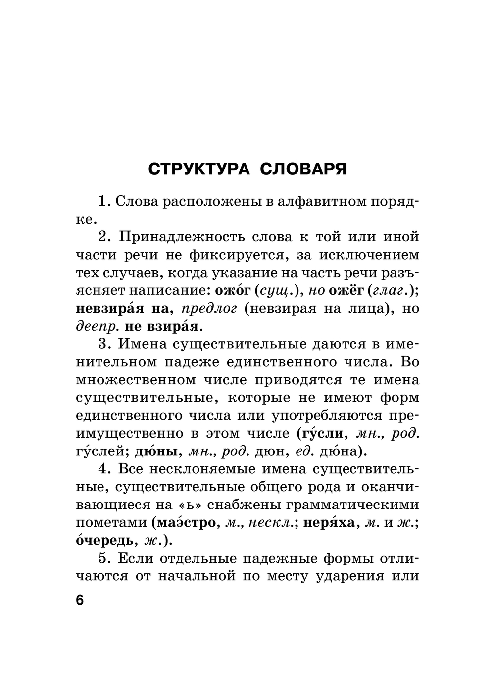Словарь содержит около 20 000 слов и словосочетаний. В него вошли слова современного русского языка, при написании которых могут возникнуть сложности. В тех случаях, когда надо пояснить особенности правописания, даются краткие толкования. Словарь может также служить справочником по русскому произношению, так как составлен с соблюдением всех орфоэпических норм.