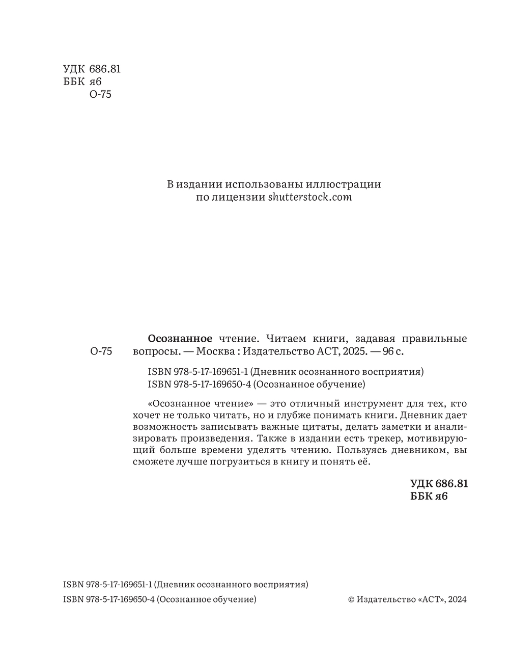 "Осознанное чтение" – это отличный инструмент для тех, кто хочет не только читать, но и глубже понимать книги. Дневник дает возможность записывать важные цитаты, делать заметки и анализировать произведения. Также в издании есть трекер, мотивирующий больше времени уделять чтению. Пользуясь дневником, вы сможете лучше погрузиться в книгу и понять её.