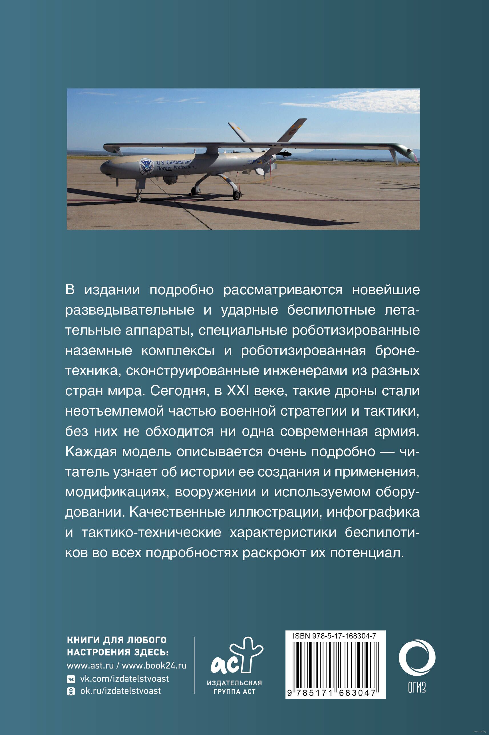 В издании подробно рассматриваются новейшие разведывательные и ударные беспилотные летательные аппараты, специальные роботизированные наземные комплексы и роботизированная бронетехника, сконструированные инженерами из разных стран мира. Сегодня, в XXI веке, такие дроны стали неотъемлемой частью военной стратегии и тактики, без них не обходится ни одна современная армия. Каждая модель описывается очень подробно – читатель узнает об истории ее создания и применения, модификациях, вооружении и используемом оборудовании. Качественные иллюстрации, инфографика и тактико-технические характеристики беспилотников во всех подробностях раскроют их потенциал.