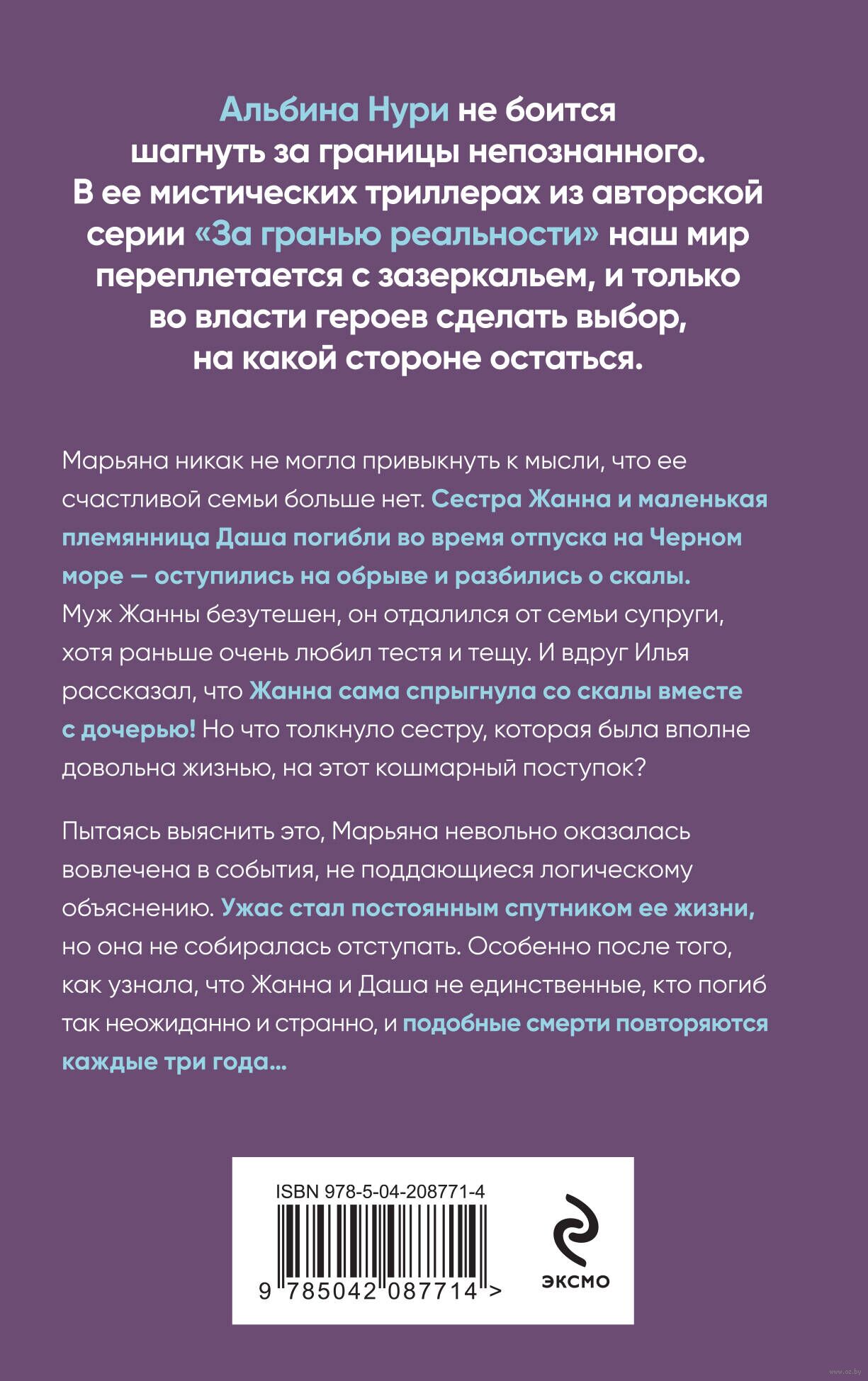 Марьяна никак не могла привыкнуть к мысли, что ее счастливой семьи больше нет. Сестра Жанна и маленькая племянница Даша погибли во время отпуска на Черном море – оступились на обрыве и разбились о скалы. Муж Жанны безутешен, он отдалился от семьи супруги, хотя раньше очень любил тестя и тещу. И вдруг Илья рассказал, что Жанна сама спрыгнула со скалы вместе с дочерью! Но что толкнуло сестру, которая была вполне довольна жизнью, на этот кошмарный поступок? Пытаясь выяснить это, Марьяна невольно оказалась вовлечена в события, не поддающееся логическому объяснению. Ужас стал постоянным спутником ее жизни, но она не собиралась отступать. Особенно после того, как узнала, что Жанна и Даша не единственные, кто погиб так неожиданно и странно, и подобные смерти повторяются каждые три года...