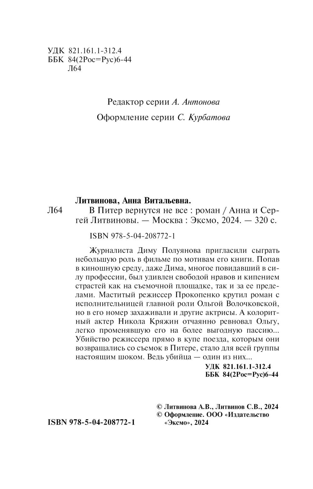 | Изготовитель | ООО «Издательство «Эксмо». РФ, г. Москва, ул. Клары Цеткин, 18, корп. 5 |
