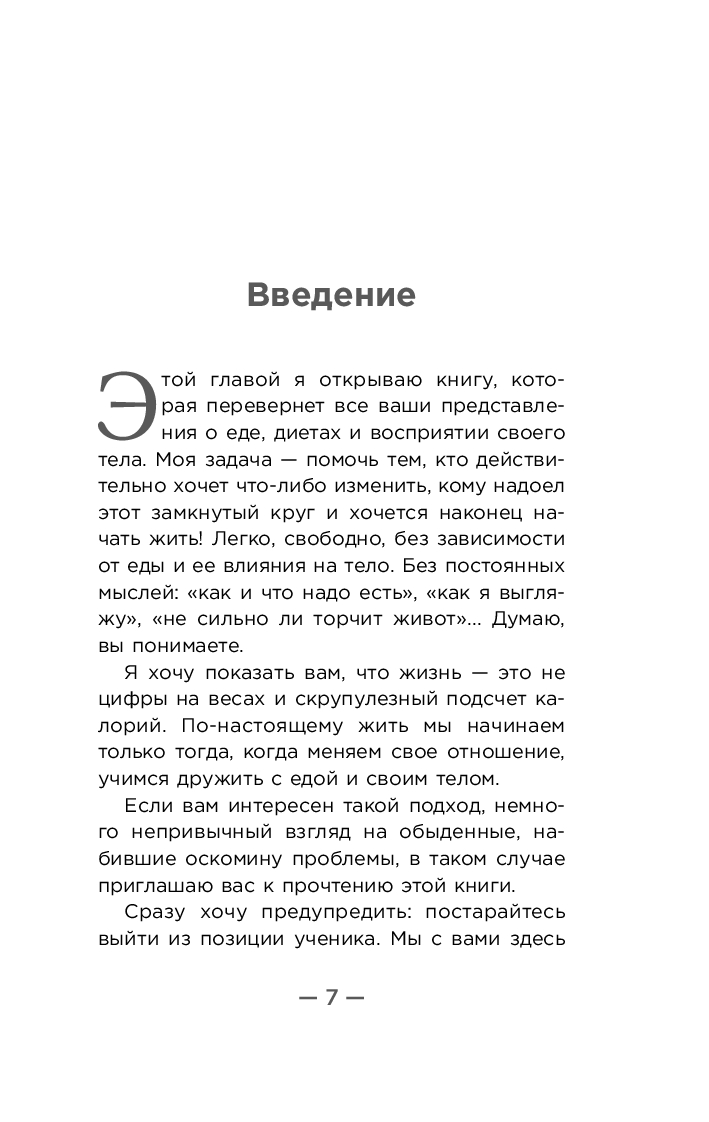 Эта книга перевернет все ваши представления о еде, диетах и восприятии себя. Она для тех, кто хочет жить легко и свободно, без лишнего веса, зависимости от еды и ее влияния на тело, без постоянных мыслей – "как я выгляжу", "не сильно ли торчит живот", "я снова поправилась". И если вы уже перепробовали множество диет в надежде избавиться от лишнего веса, но они не сработали, эта книга точно для вас.