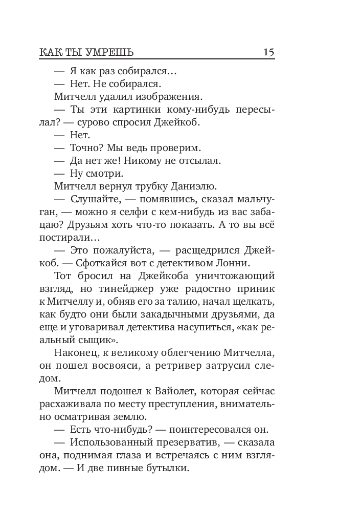 Выяснилось, что убитая зарабатывала на жизнь довольно специфичным, извращенным способом. Список подозреваемых растет как снежный ком... Но когда погибает еще одна девушка, детектив Митчелл Лонни обнаруживает связь: перед нападением обе жертвы получили предупреждение о том, как они умрут.