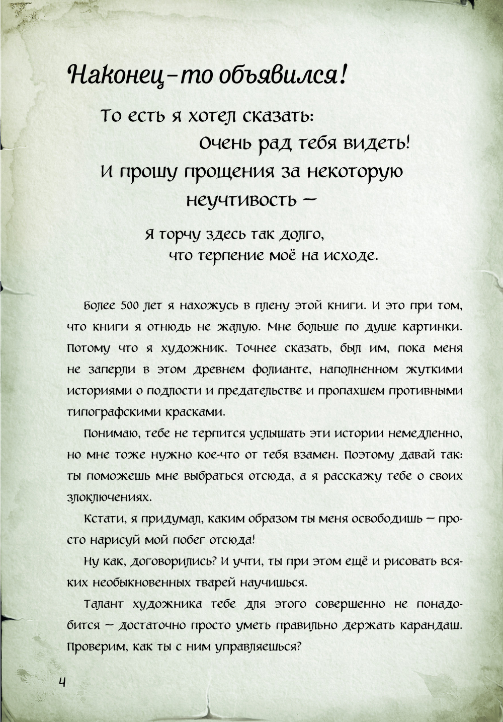 Потому что на её страницах заключён дух художника, и только в том случае, если ему удастся пробудить творческие способности читателей, он выйдет на свободу. Само собой, этот художник сделает всё возможное, чтобы передать свои знания и вдохновить тебя. Он покажет, как рисовать монстров, эльфов и других фантастических существ всего несколькими мазками, а также раскрашивать по числам, чтобы освободить разум. И, конечно же, он раскроет море секретов!