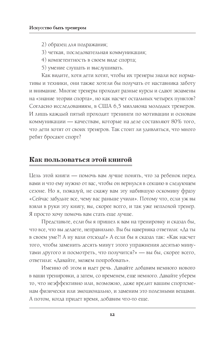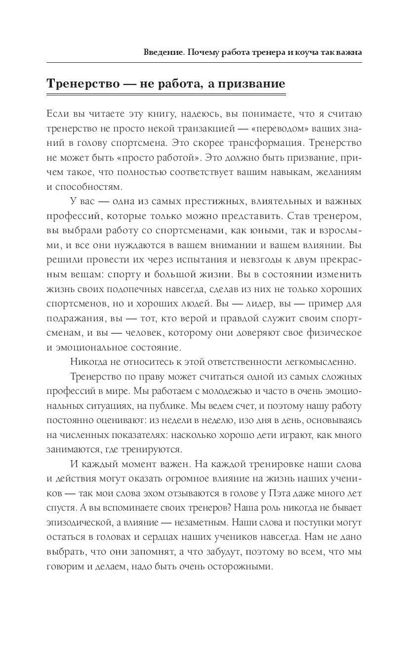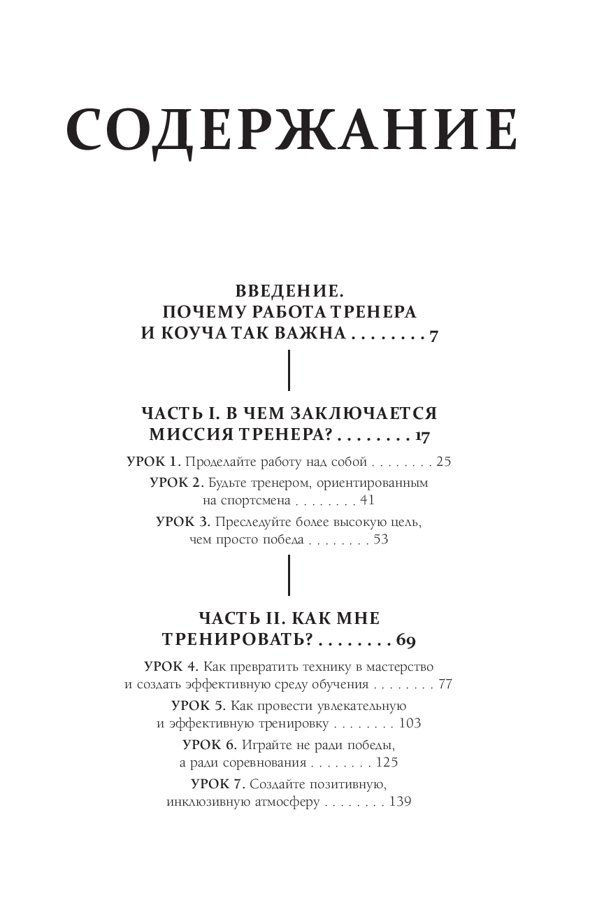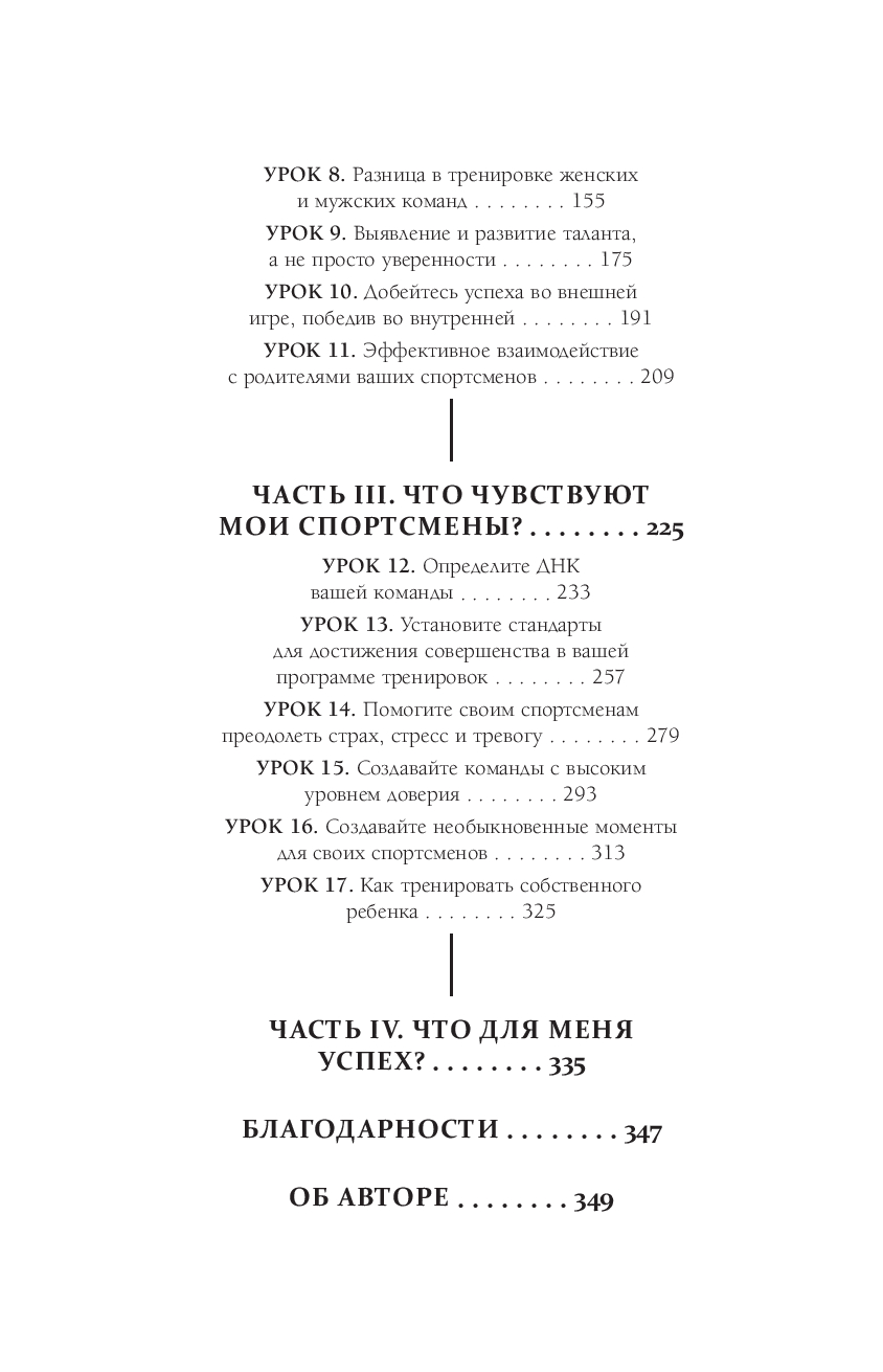 Как самые успешные тренеры мира добиваются наилучшего результата от своих спортсменов? Как тренеры разрабатывают методики, вдохновляют игроков и создают команды, которые подтверждают свое превосходство сезон за сезоном? Как они прививают высокоэффективные модели поведения? По-разному ли они тренируют мужчин и женщин? А как насчет тренировки собственных детей? И самое главное, доступны ли эти секреты всем нам, тренирующим молодежные, школьные и студенческие команды?