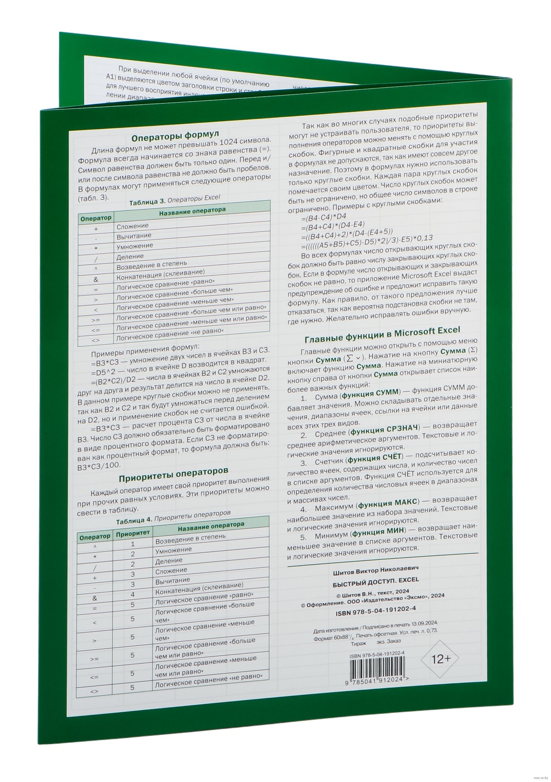 Быстрый доступ. Excel: таблицы, формулы, секреты. Шпаргалка-буклет для начинающих