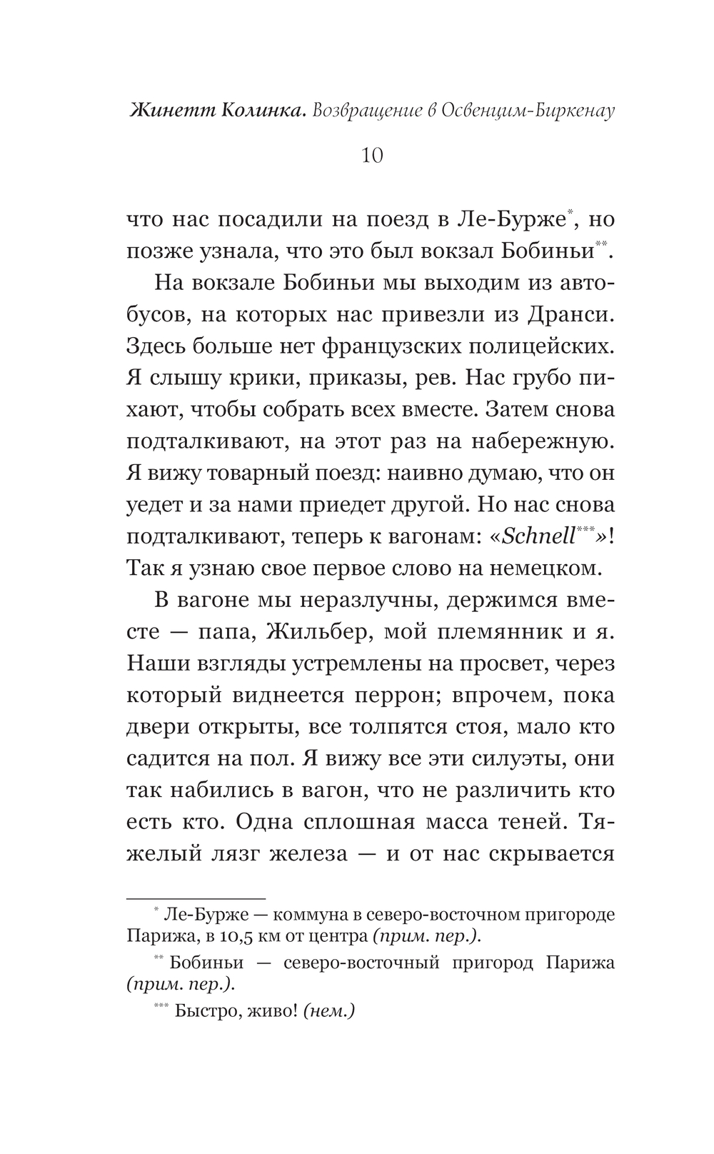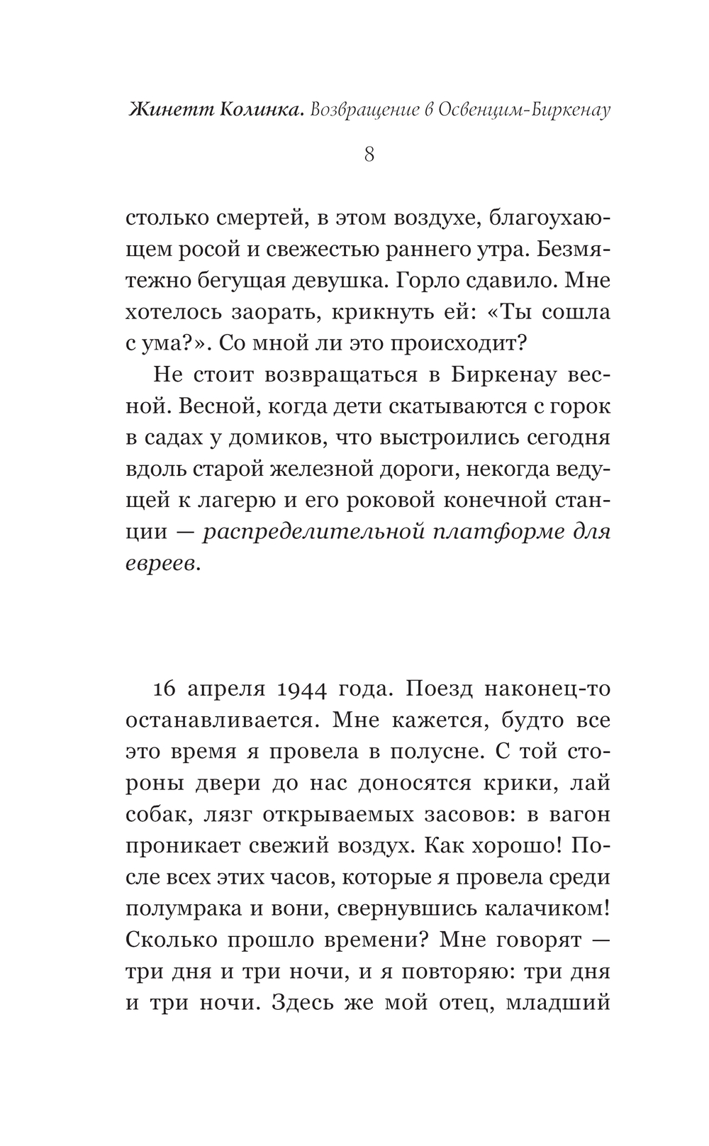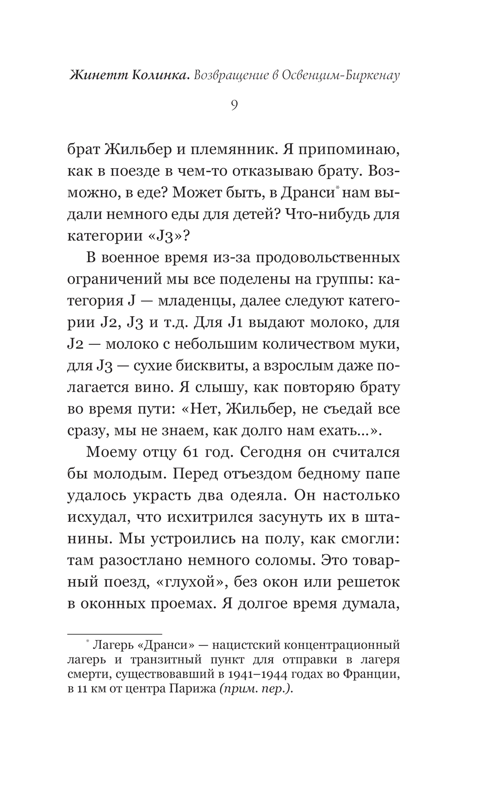 В марте 1944 года Жинетт Колинка в возрасте 19 лет вместе со своим отцом, младшим братом и племянником была депортирована в лагерь смерти Освенцим-Биркенау. Она стала единственной из семьи, кто вернулся обратно.
