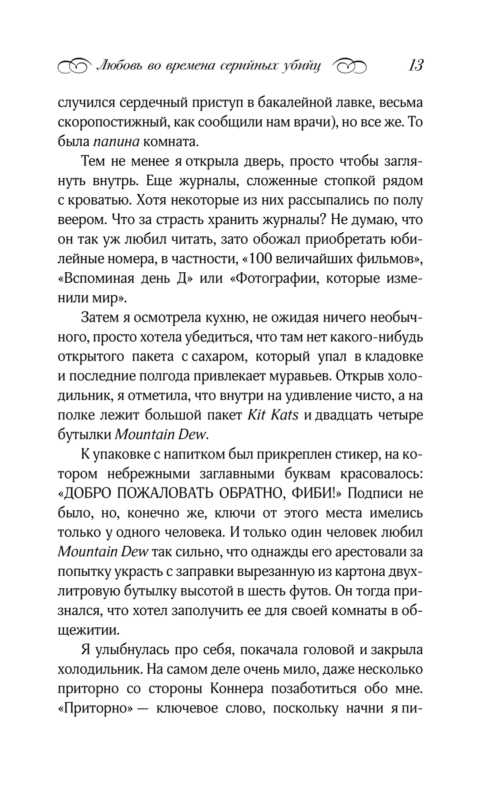 Фиби Уолш настолько одержима серийными убийцами, что посвящает им кандидатскую диссертацию, которую ей предстоит писать в старом доме покойного отца на мрачной улице. А еще ее пугает сосед – Сэм Деннингс, который, по ее экспертному мнению, явно серийный убийца.
