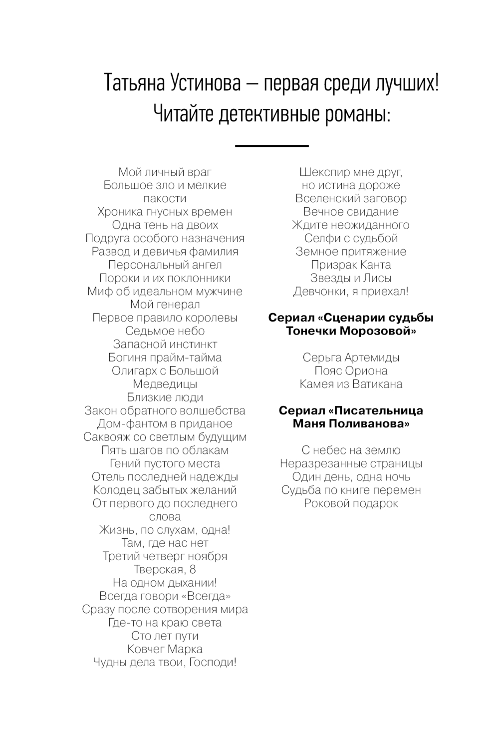 | Серия | Татьяна Устинова. Первая среди лучших. Избранное |