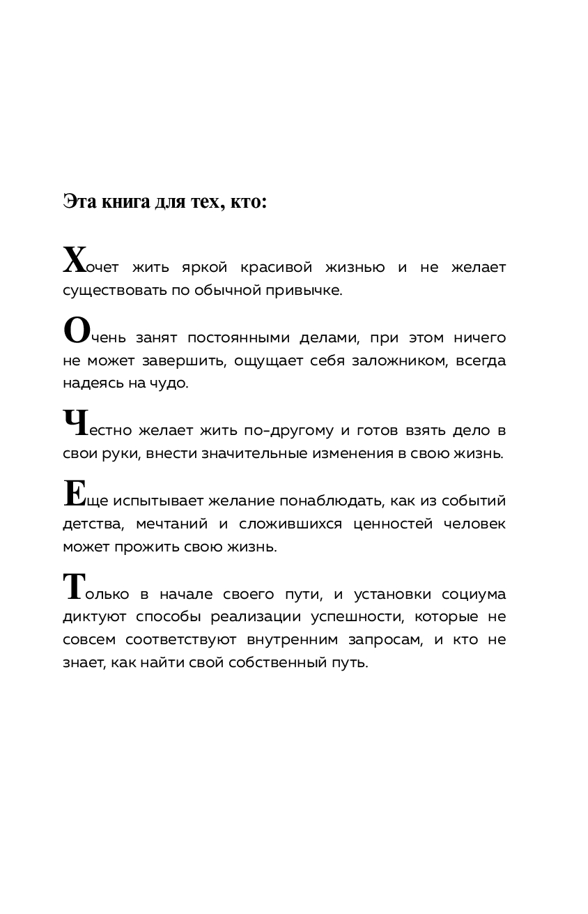 В этой уникальной книге вы найдете пересечение упражнений и реальных историй, которые помогут раскрыть ваш внутренний потенциал, осознать самые сокровенные мечты и увидеть свою лучшую жизнь.