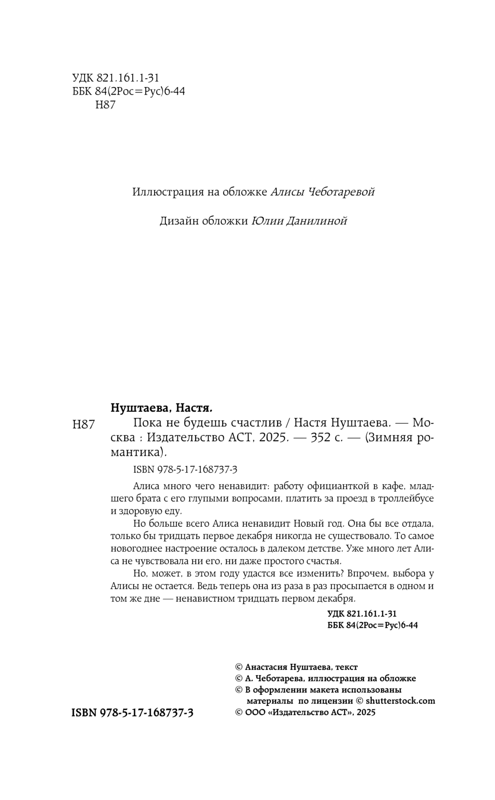 Но больше всего Алиса ненавидит Новый год. Она бы все отдала, только бы тридцать первое декабря никогда не существовало. То самое новогоднее настроение осталось в далеком детстве. Уже много лет Алиса не чувствовала ни его, ни даже простого счастья.