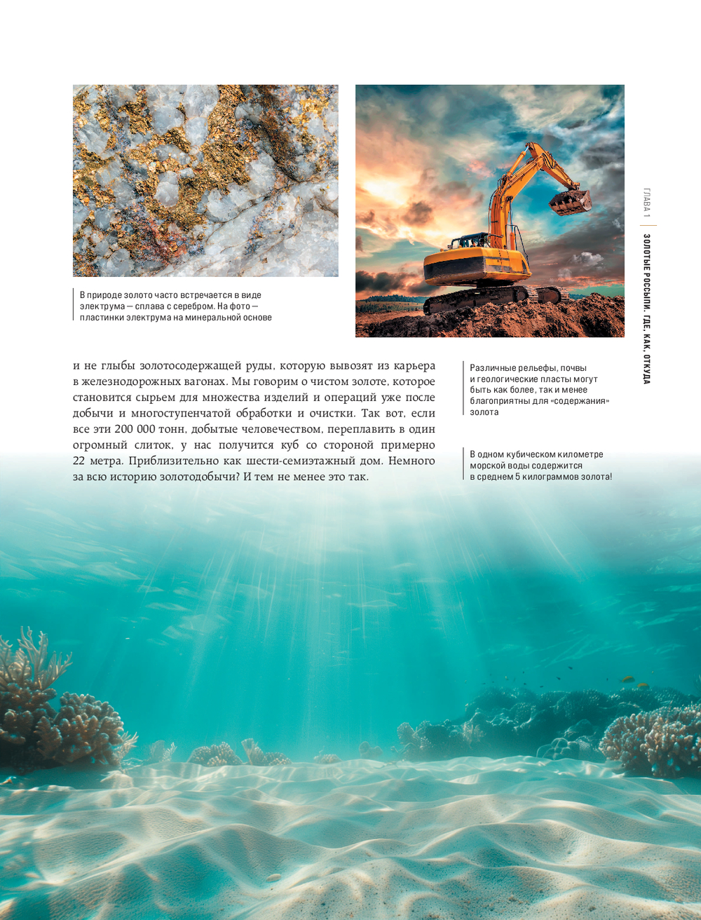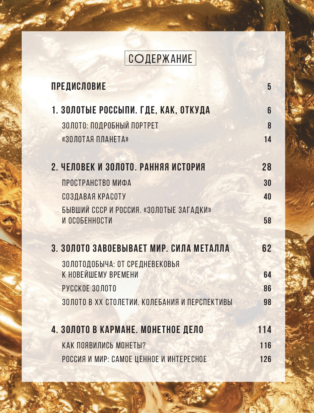 Эта уникальная подарочная книга погрузит вас в завораживающий мир истории золота – металла, который на протяжении веков пленял умы и сердца людей. Впечатляющие иллюстрации и увлекательные факты переносят во времена древних цивилизаций, когда золото использовалось в обрядах и украшениях, а также через эпохи великих империй и золотых лихорадок. Вы узнаете об удивительных находках, которые преобразовали историю, о мифах и легендах, связанных с золотом, истории: от первых золотодобытчиков до современных крупнейших предприятий. Книга поможет вам разобраться в том, почему золото так высоко ценится во всем мире и как оно стало главной мерой стоимости товаров. Книга представляет собой не только великолепный подарок, но и бесценный источник знаний о металле, проверенном веками и имеющем непреходящую ценность.