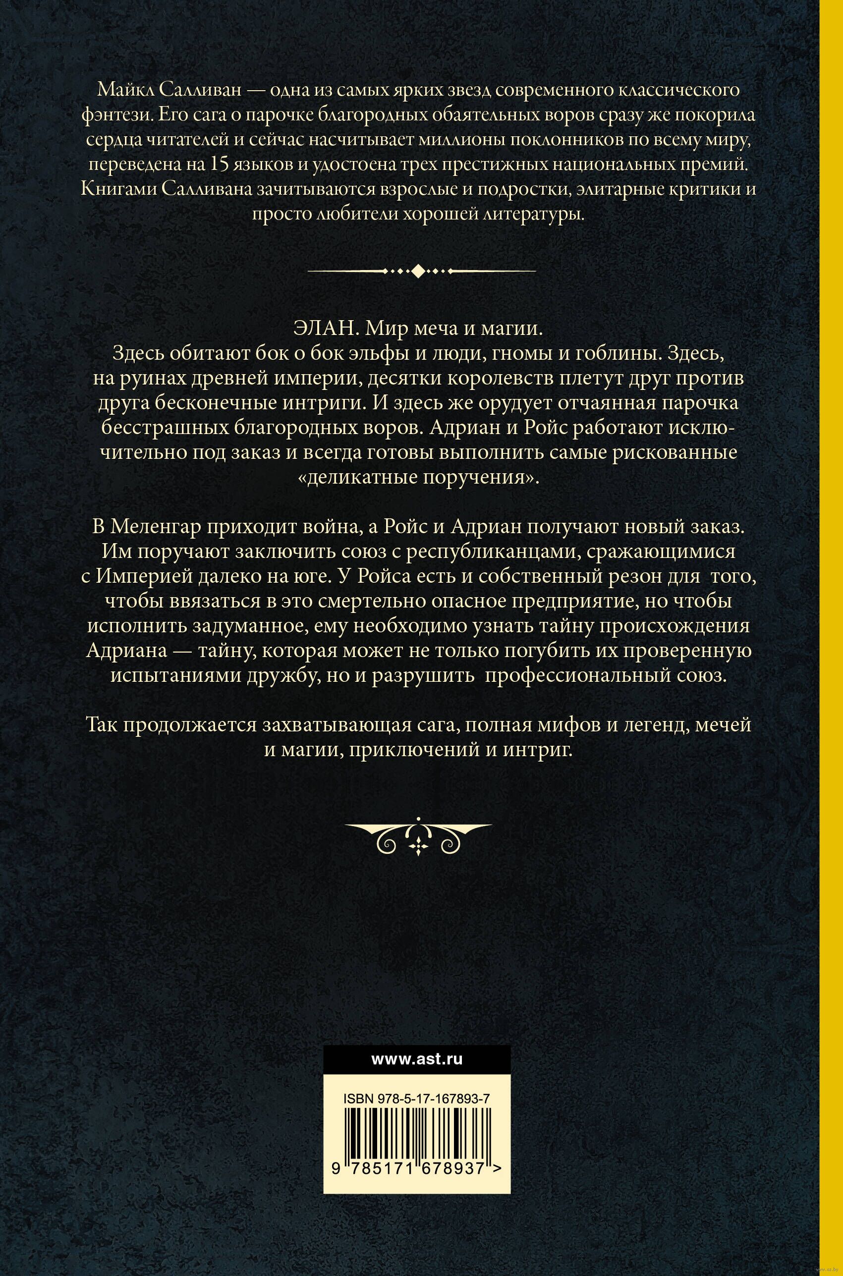 В Меленгар приходит война, а Ройс и Адриан получают новый заказ. Им поручают заключить союз с республиканцами, сражающимися с Империей далеко на юге. У Ройса есть и собственный резон для того, чтобы ввязаться в это смертельно опасное предприятие, но чтобы исполнить задуманное, ему необходимо узнать тайну происхождения Адриана – тайну, которая может не только погубить их проверенную испытаниями дружбу, но и разрушить профессиональный союз.
