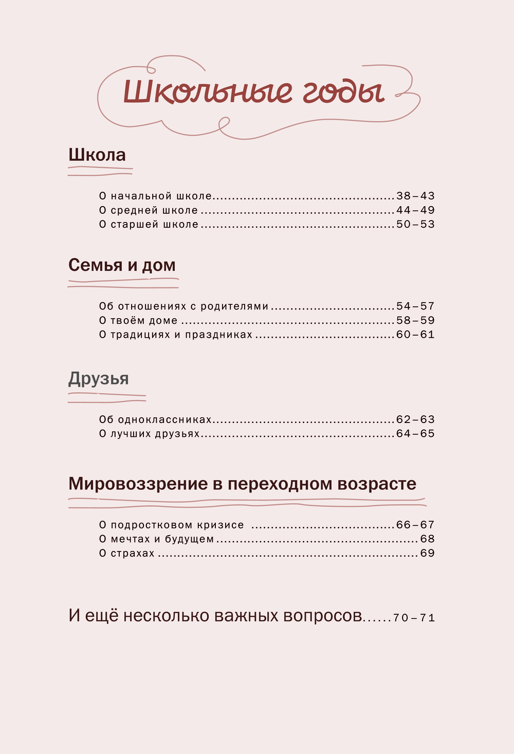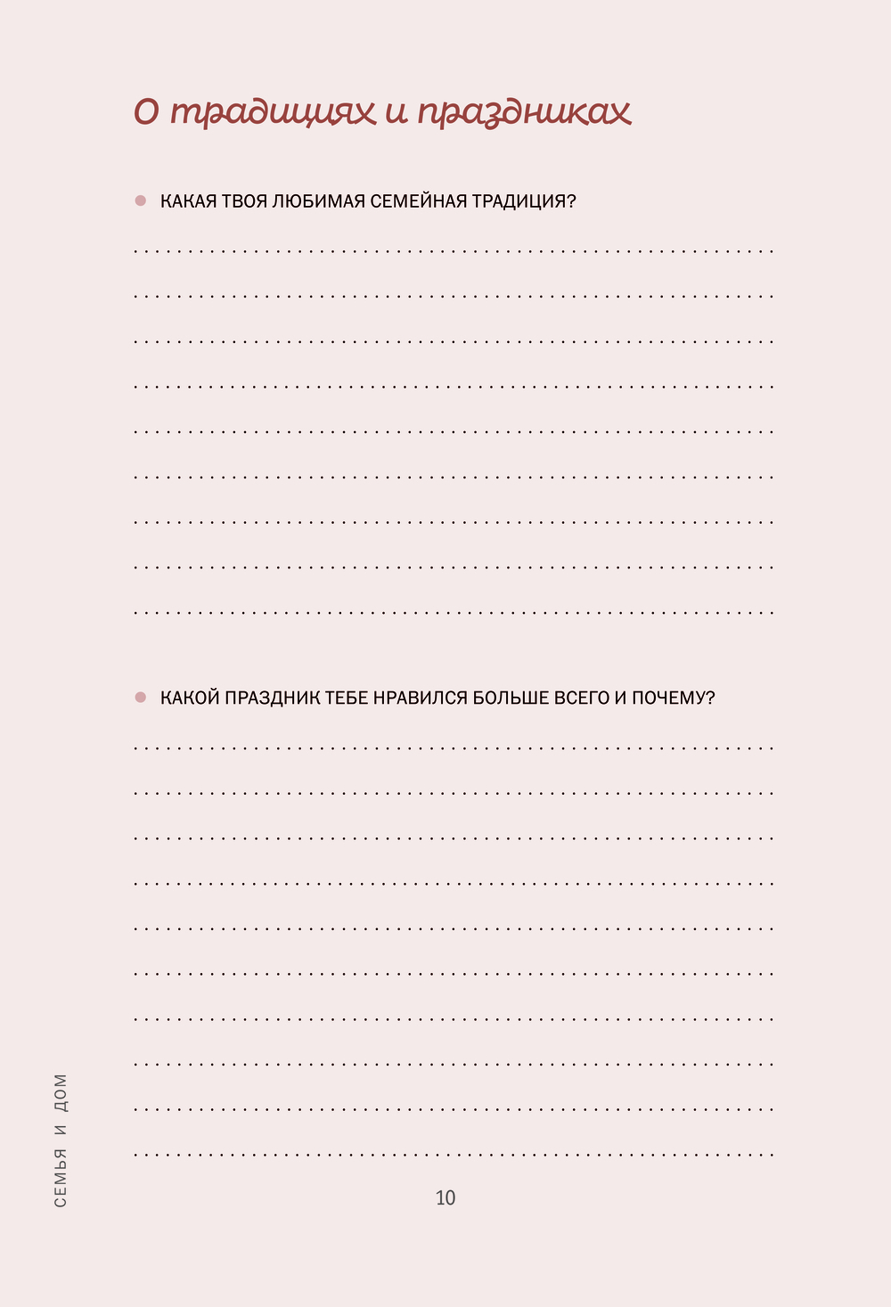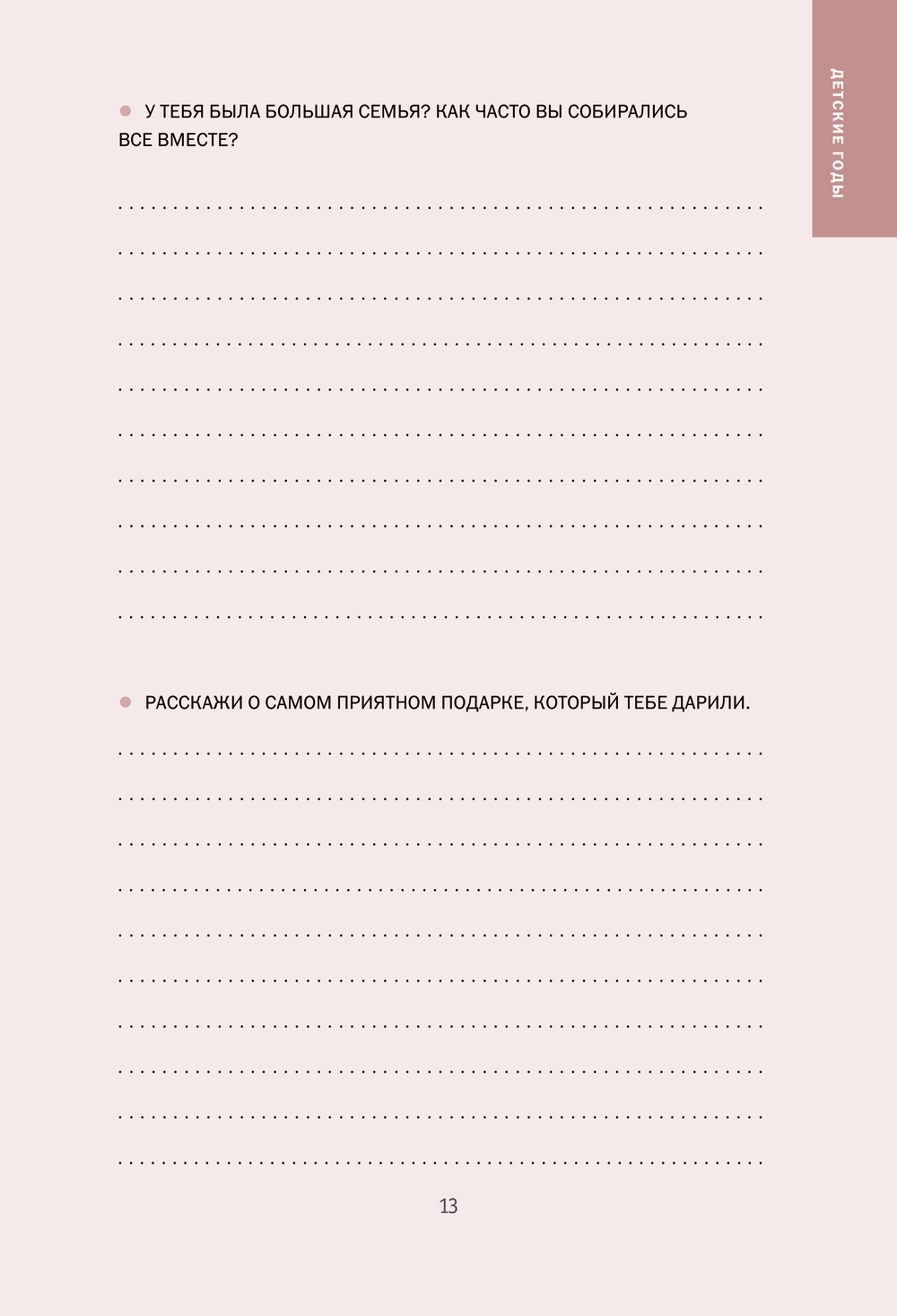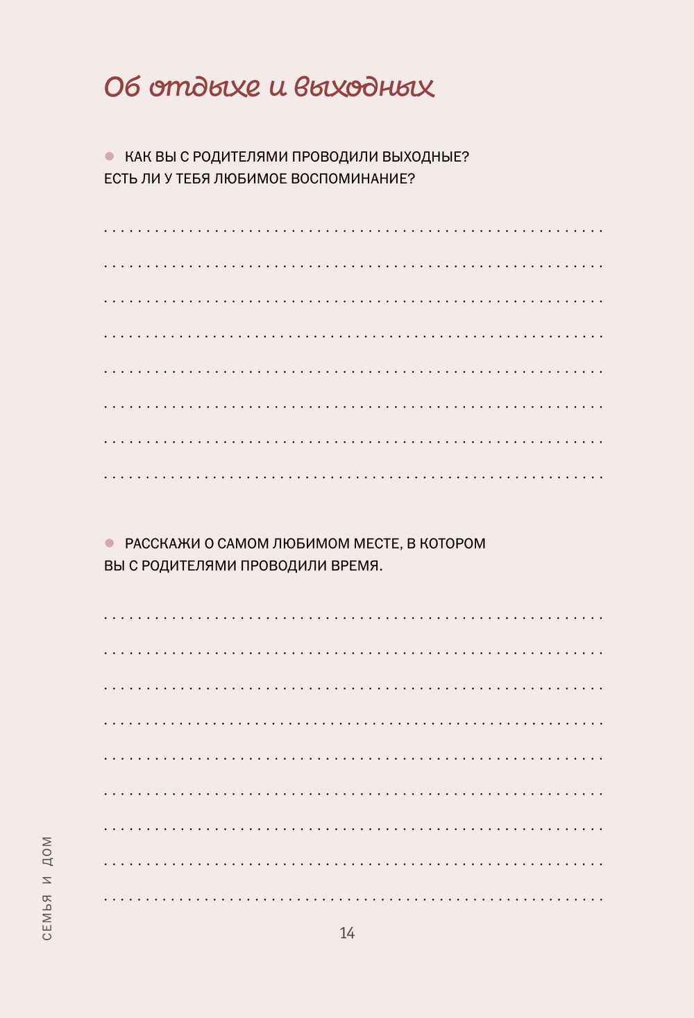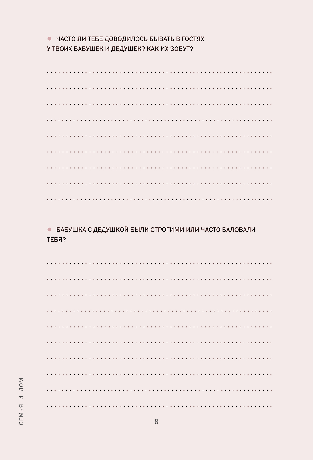 В этой книге заботливо собраны вопросы, наводящие на трогательные воспоминания. Попросите дедушку записать ответы или запишите их самостоятельно с его слов. Если хотите, можете задавать вопросы последовательно, ведь все они расположены хронологически – от детства к нынешнему возрасту. Но на самом деле никаких правил нет! Можете начать диалог с любого места и дальше ориентироваться на ход беседы, переходя от раздела к разделу в зависимости от приходящих воспоминаний.