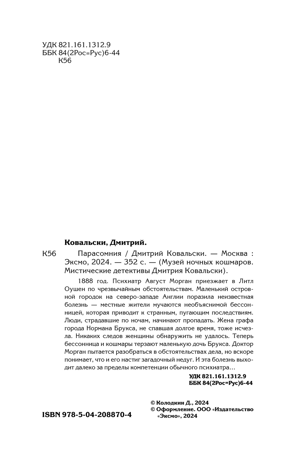 | Серия | Музей ночных кошмаров. Мистические детективы Дмитрия Ковальски |