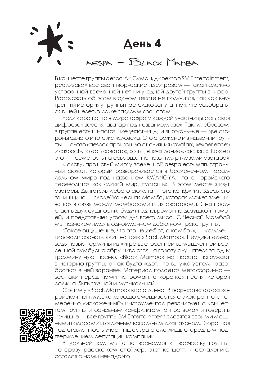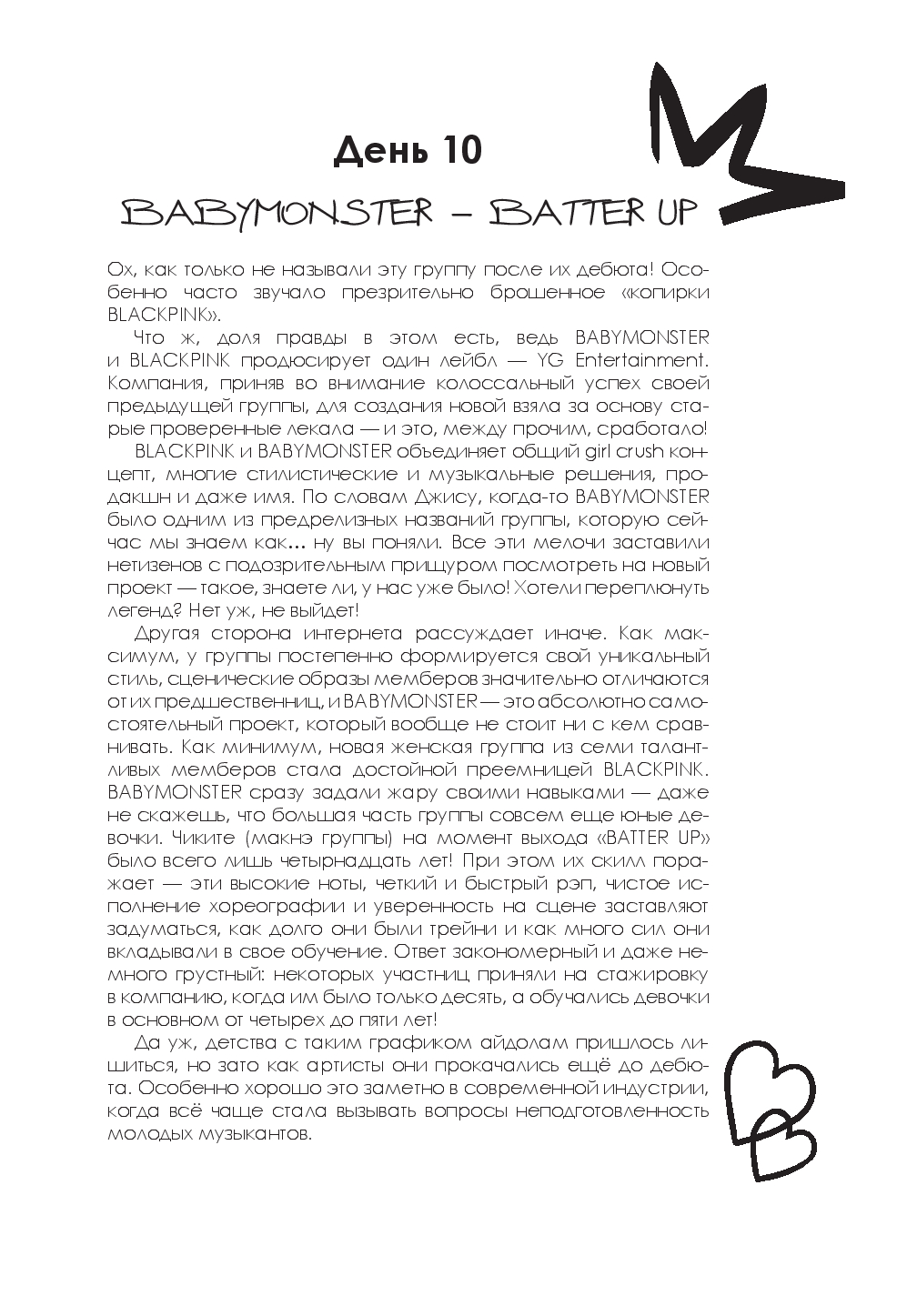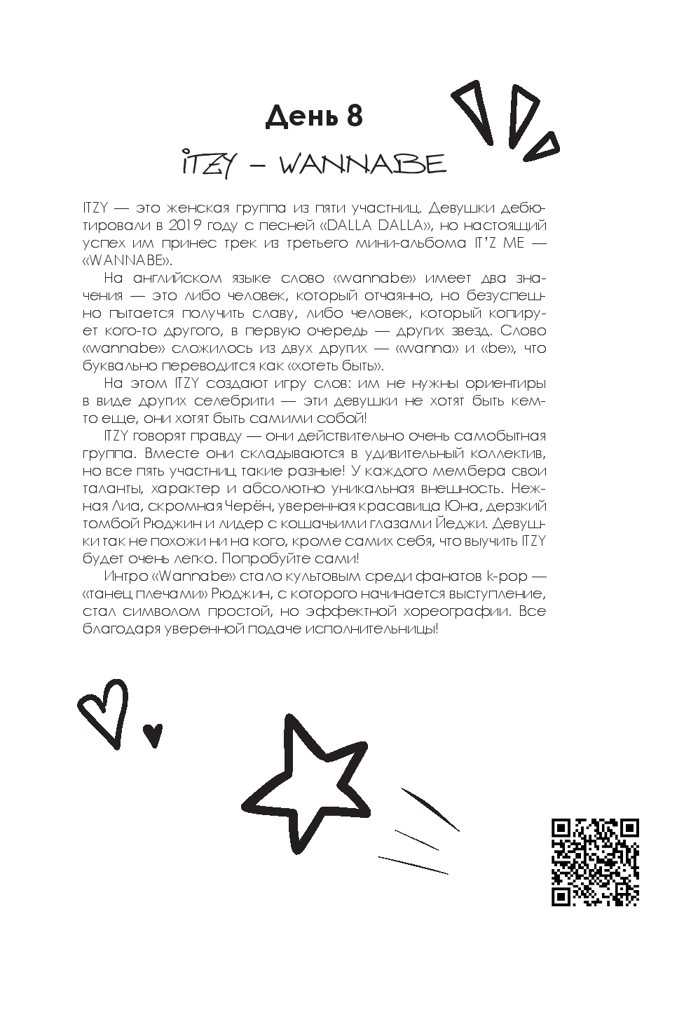 В этой книге рассказывается о 100 песнях в жанре k-pop, за каждой из которых своя история. Узнайте историю хитов группы BTS, с чего началось восхождение Stray kids на вершину музыкальных чартов, стиль какой музыкальной группы переняла для одной из своих песен группа ATEEZ, какие смыслы вкладывала в свои песни (G)I-DLE – и многое другое! Книга позволит погрузиться в мир корейской популярной музыки и провести 100 незабываемых вечеров!