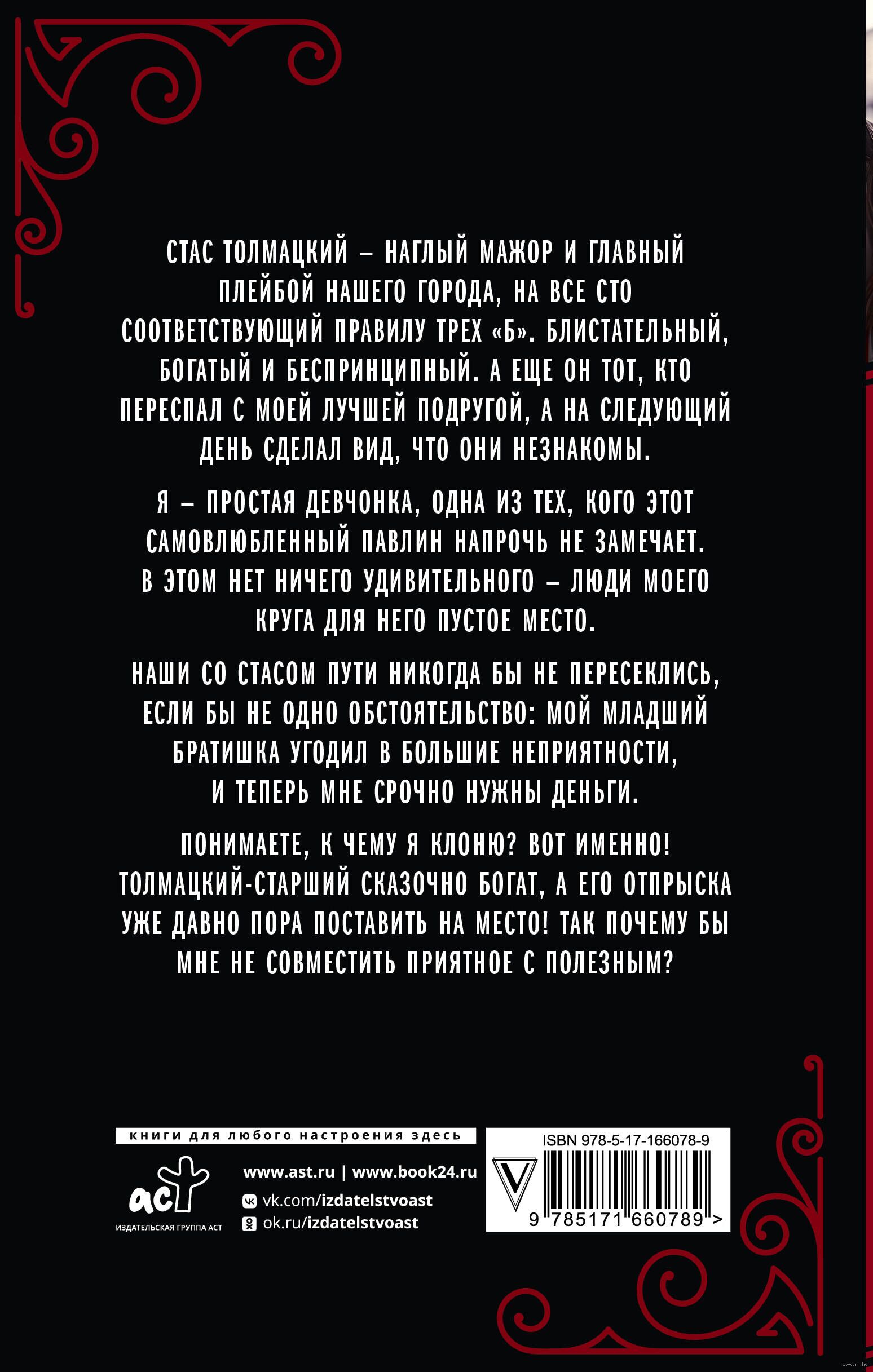 Стас Толмацкий – наглый мажор и главный плейбой нашего города, на все сто соответствующий правилу трех "Б". Блистательный, богатый и беспринципный. А еще он тот, кто переспал с моей лучшей подругой, а на следующий день сделал вид, что они незнакомы.