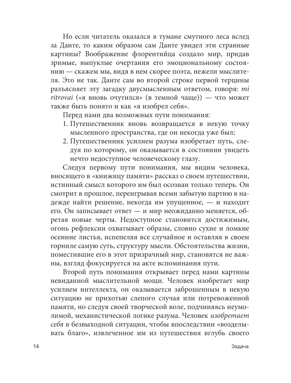 Чтобы приблизиться к ответам, мы обратимся к мыслительной традиции античного Средиземноморья и средневекового Ирана, откроем для себя новый жанр философского текста – "путешествие в себя" – мы войдём во внутренний театр Данте, присмотримся к его сценографии, оценим игру актёров этой причудливой монодрамы.