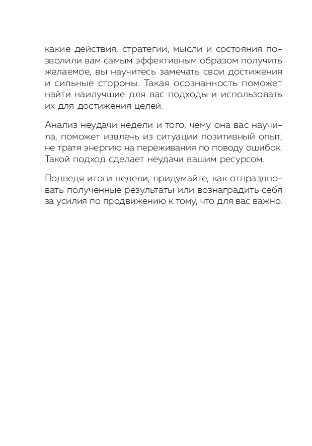 Популярный еженедельник теперь в мини формате ежедневника на квартал. Программа преображения жизни за 52 недели с помощью постановки приоритетов. Помогает сфокусировать усилия на главных задачах и навести порядок во всех жизненных сферах. Содержит трекеры привычек, поля для проработки целей на неделю, квартал и год, структурирующие списки и формы для анализа минувшего периода. Еженедельник создан на основе системы Натальи Нечаевой – экс-топ-менеджера Audi и Volkswagen, спикера в "Сколково" и НИУ ВШЭ.