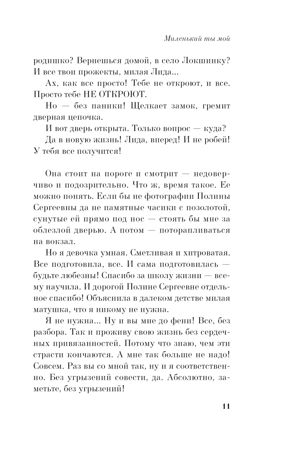 Сначала Лиду бросила мать – оставила на воспитание бабушке в глухой деревне. Так девочка и росла – с твердым убеждением, что никому не нужна. Потом ее бросали мужчины – неожиданно, подло, несправедливо. Так, что всякий раз хотелось кричать: "Мой милый, что тебе я сделала?" Лиде казалось, что ее сердце заморожено навсегда и разморозить его нельзя. Да она и не хотела. Жить без любви даже удобно – ни страданий, ни разочарований.