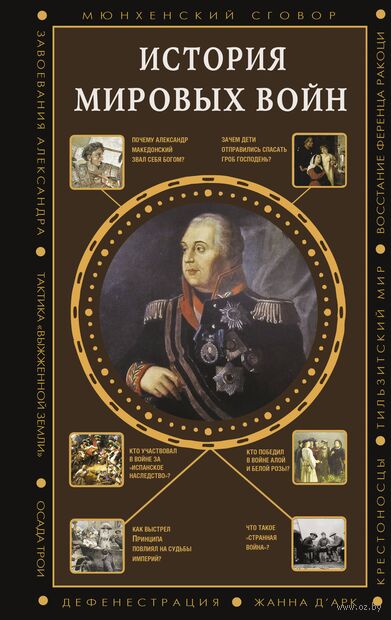 Каждая страница – путешествие в прошлое, где можно встретиться с личностями, повлиявшими на ход истории, – Александром Македонским, Ричардом Львиное Сердце, Жанной Д'Арк, Наполеоном, Вильгельмом II, Адольфом Гитлером... Вы узнаете, почему была убита Елена Прекрасная, как карфагенская армия под предводительством Ганнибала переправлялась через Альпы, сколько длилась Столетняя война, почему Франции и Англии было так важно поражение России в Крымской войне и когда впервые было применено химическое оружие.