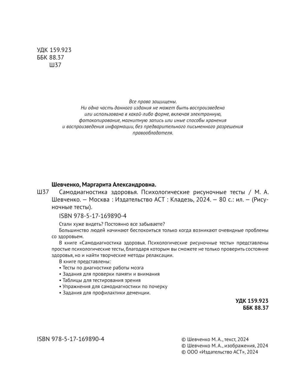В книге "Психологические рисуночные тесты для самодиагностики" представлены простые психологические тесты, благодаря которым вы сможете не только проверить состояние здоровья, но и найти творческие методы релаксации.