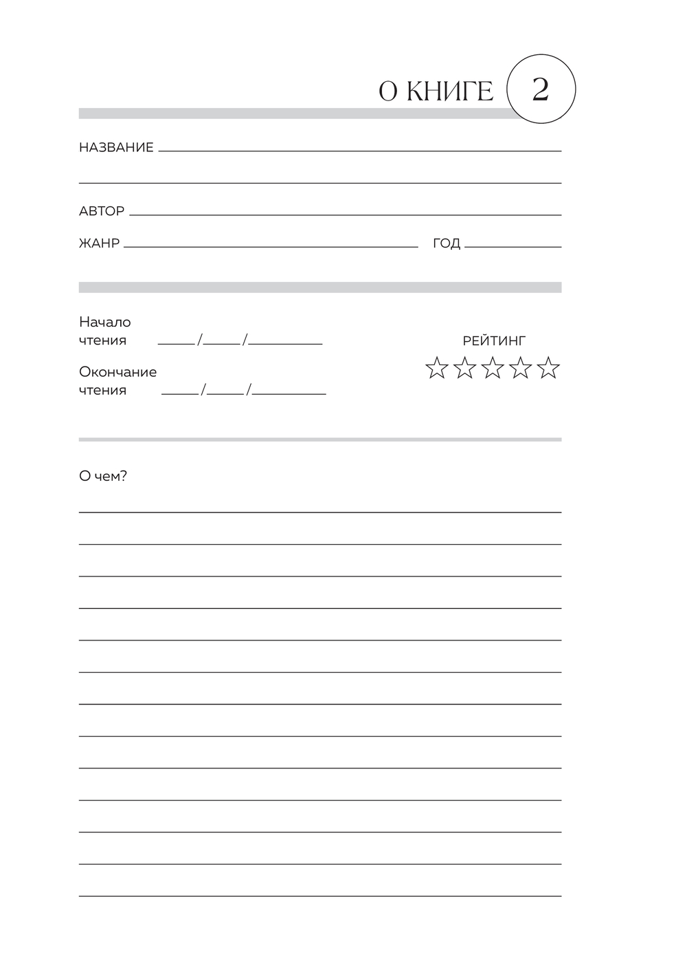 Читательский дневник – это стильный инструмент для всех, кто не просто любит читать, а превращает книги в часть своей идентичности. Внутри – пространство для анализа и описания 47 книг, на котором можно выразить впечатления и мысли, записать любимые цитаты и книжные планы. В конце дневника вы найдете список из 100 рекомендаций под разные настроения: захочется ли вам уютно провести вечер заливисто хохоча или испугаться так, чтобы не заснуть.