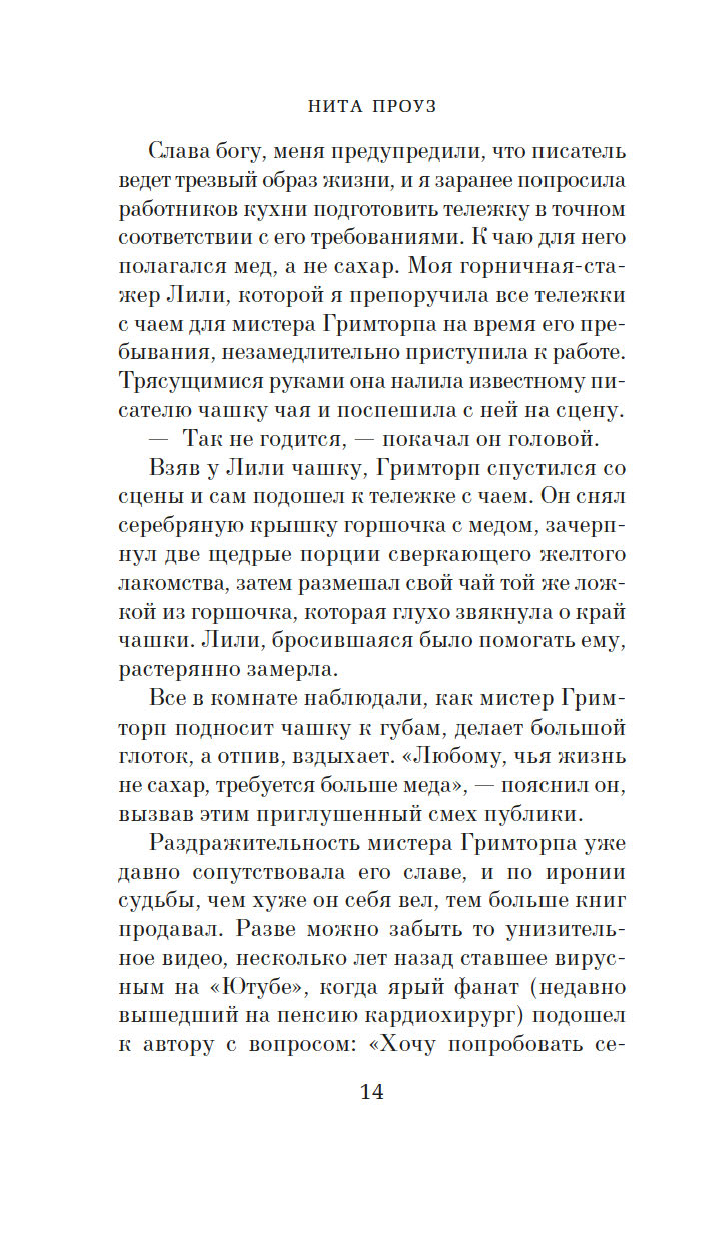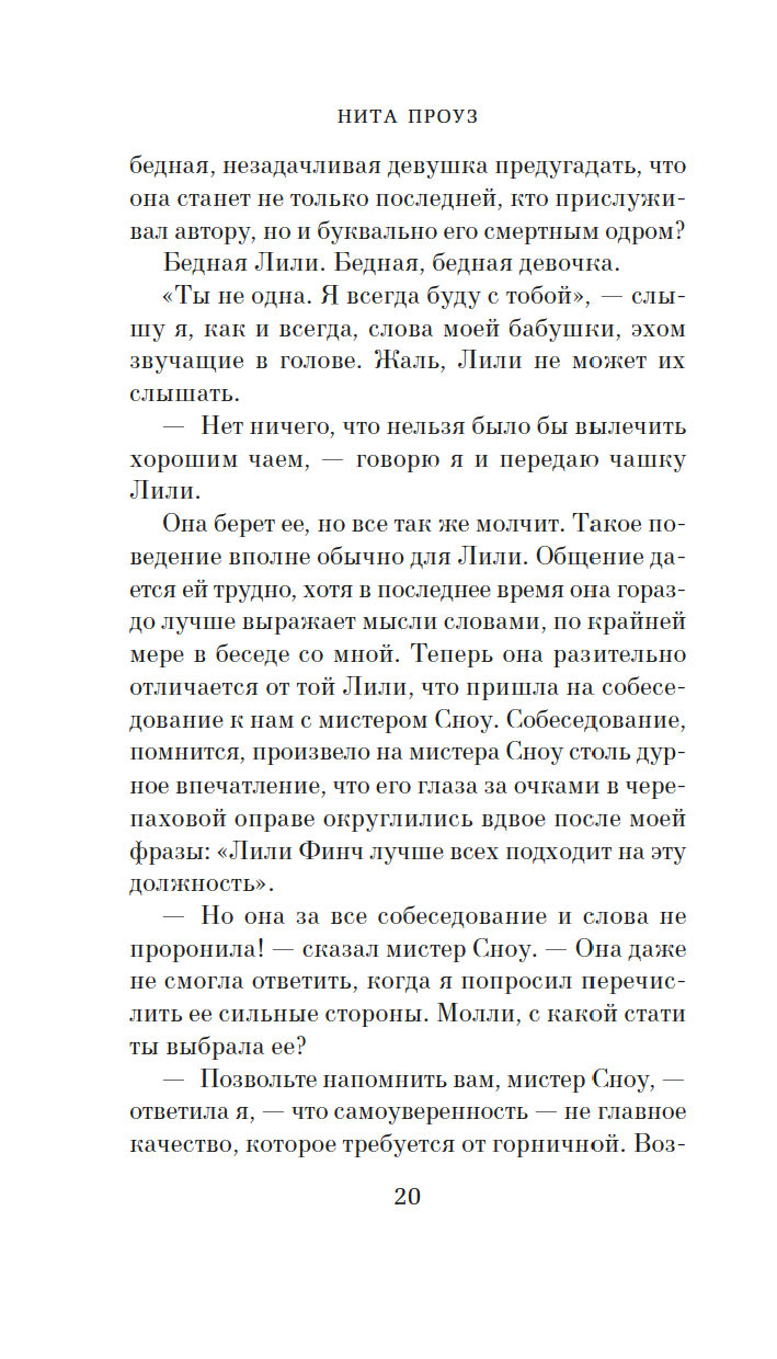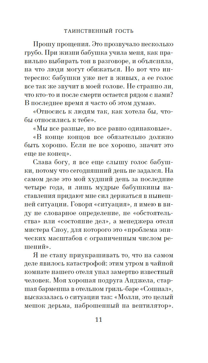 Молли Грей не такая, как все. Порой ей непросто общаться с людьми. Но благодаря своему таланту наводить чистоту она стала старшей горничной в великолепном пятизвездочном отеле. И надо же, как раз в тот момент, когда ее карьера на взлете, мир переворачивается с ног на голову: знаменитый автор детективов Джей Ди Гримторп, выступающий перед публикой в отеле, замертво падает на пол, не успев сделать некое важное заявление. В ходе расследования становится ясно: эта смерть – самое настоящее убийство. Подозреваемых более чем достаточно; громкое дело угрожает безупречной репутации отеля. Молли понимает, что только у нее есть ключ к разгадке личности убийцы. Когда-то ей доводилось бывать в доме Гримторпа... Молли должна раскрыть тайну как можно скорее. Потому что ей известно наверняка: секреты не остаются похороненными вечно...