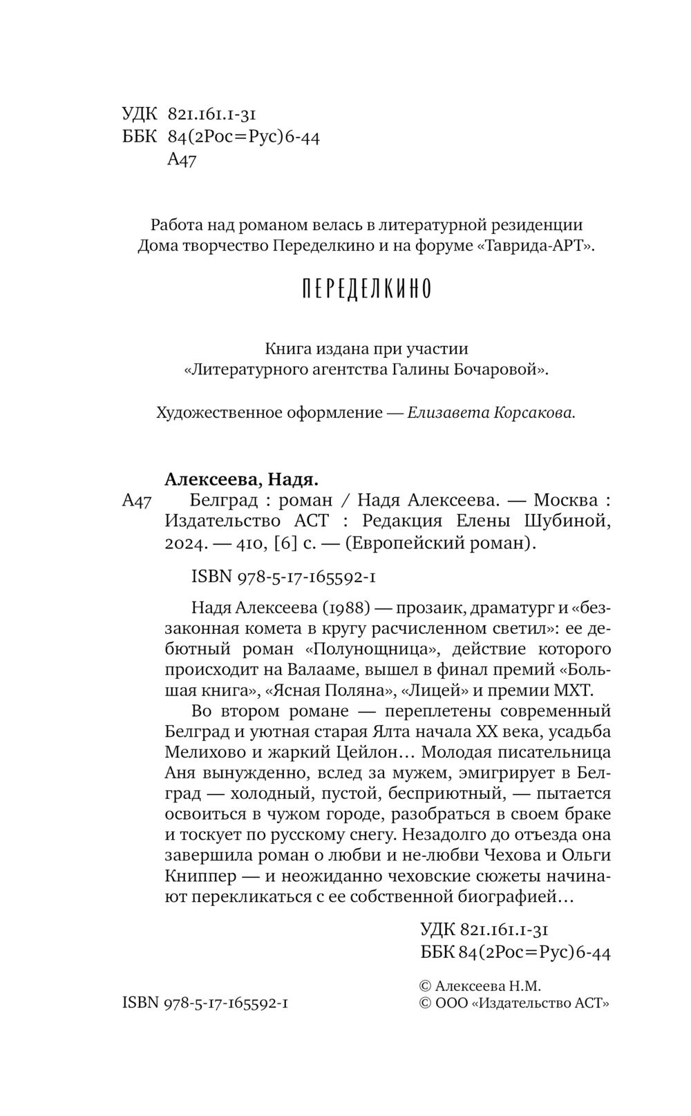 Надя Алексеева (1988) – прозаик, драматург и "беззаконная комета в кругу расчисленном светил": ее дебютный роман "Полунощница", действие которого происходит на Валааме, вошел в финал премий "Большая книга", "Ясная Поляна", "Лицей" и премии МХТ.