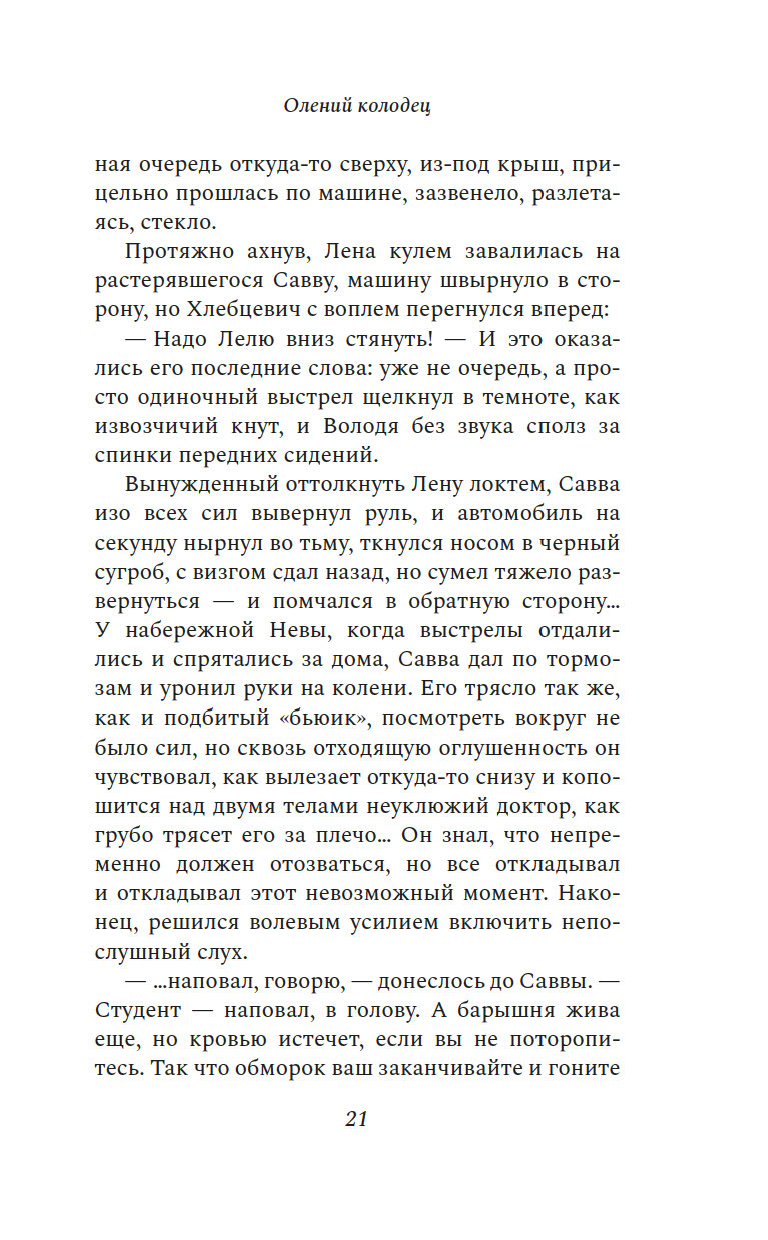 Они встретятся, когда одним жарким летним днем Олененок окажется запертой в глухом питерском доме-колодце, застряв между жизнью и смертью. И вот тогда-то Савва наконец узнает мрачную тайну своего прадедушки, поймет, почему ему дали такое редкое имя, и еще поймет, что судьба иногда подкидывает сюжеты, которых не найдешь в самых интересных книгах и фильмах