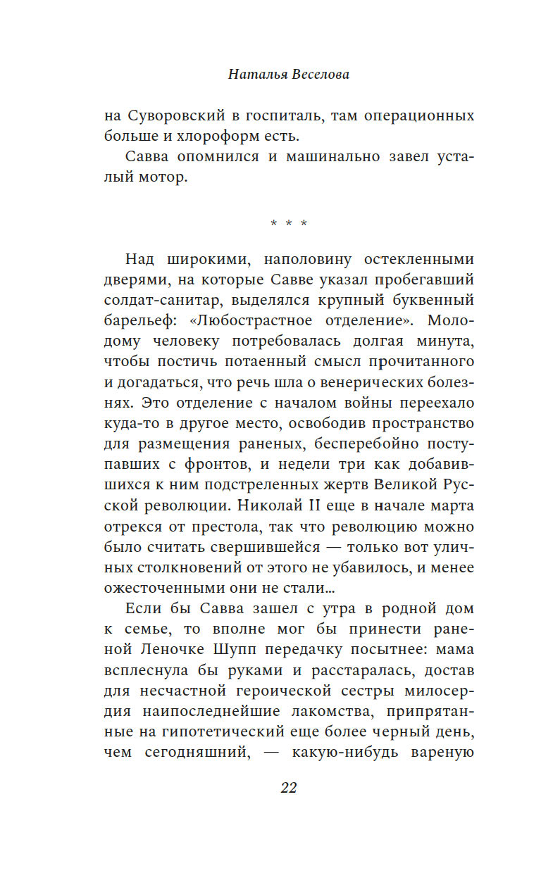 1918-й. Голодный, разоренный Петроград. Ольга и Савва – молодая пара, они видели смерть, знают цену жизни. Савва серьезен не по годам, без памяти влюблен в свою Оленьку, трогательную и нежную, и уверен, что впереди долгая, счастливая жизнь. Надо лишь пережить трудные времена.