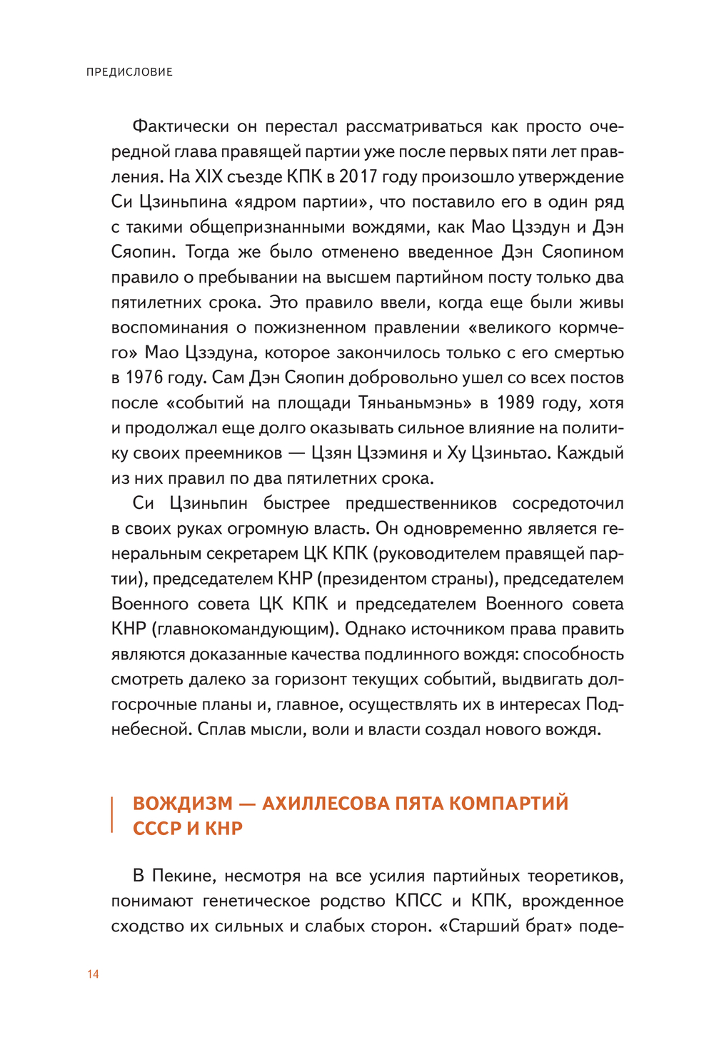 Это издание продолжает серию книг автора, около полувека изучающего Китай. Здесь изложена политическая биография Си Цзиньпина, с акцентом на последние годы, включая укрепление его политического авторитета внутри страны, сложный период борьбы с эпидемией COVID-19, конкуренцию с США. Рекомендуется всем, кто интересуется перспективами развития крупнейшей экономики мира и одного из самых мощных современных государств.