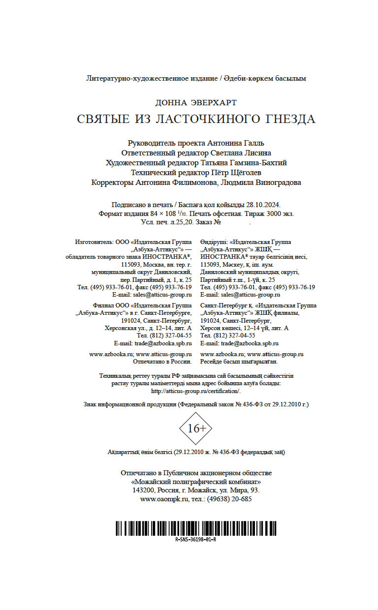 | Изготовитель | ООО "Издательство "Иностранка". 109017, РФ, г. Москва, ул. Пятницкая, 41 |
