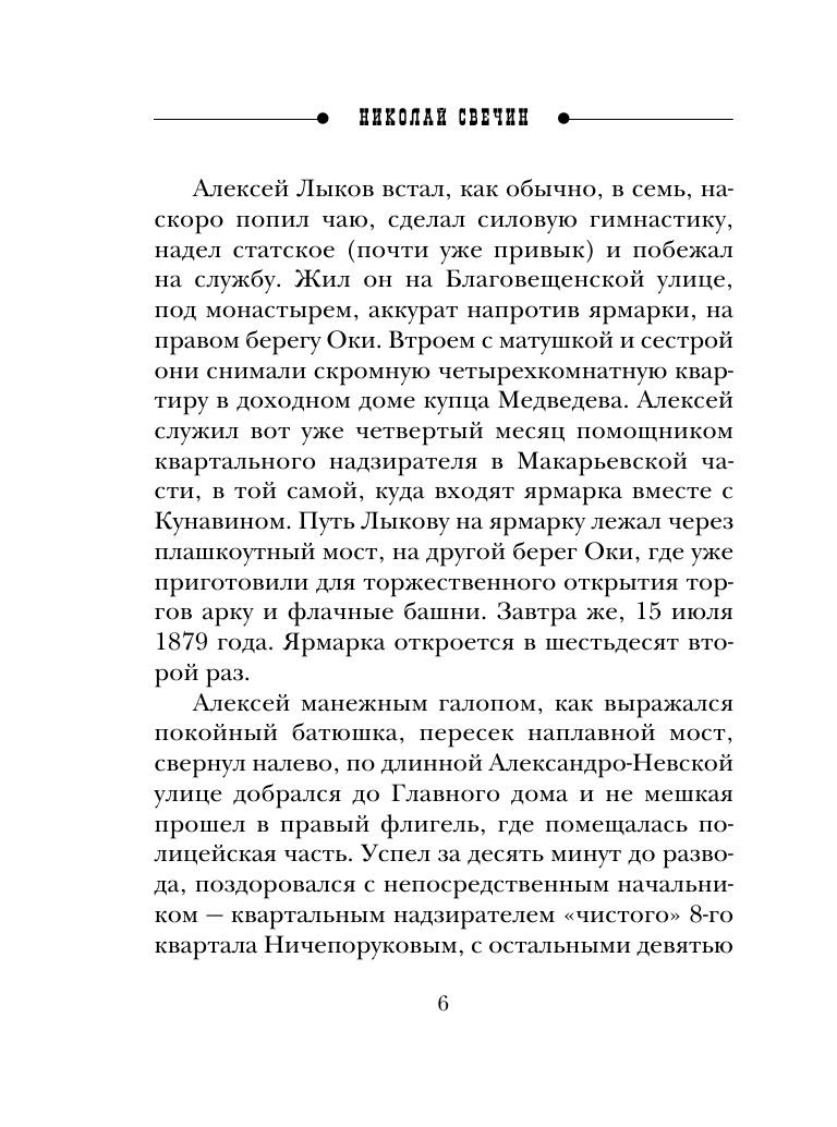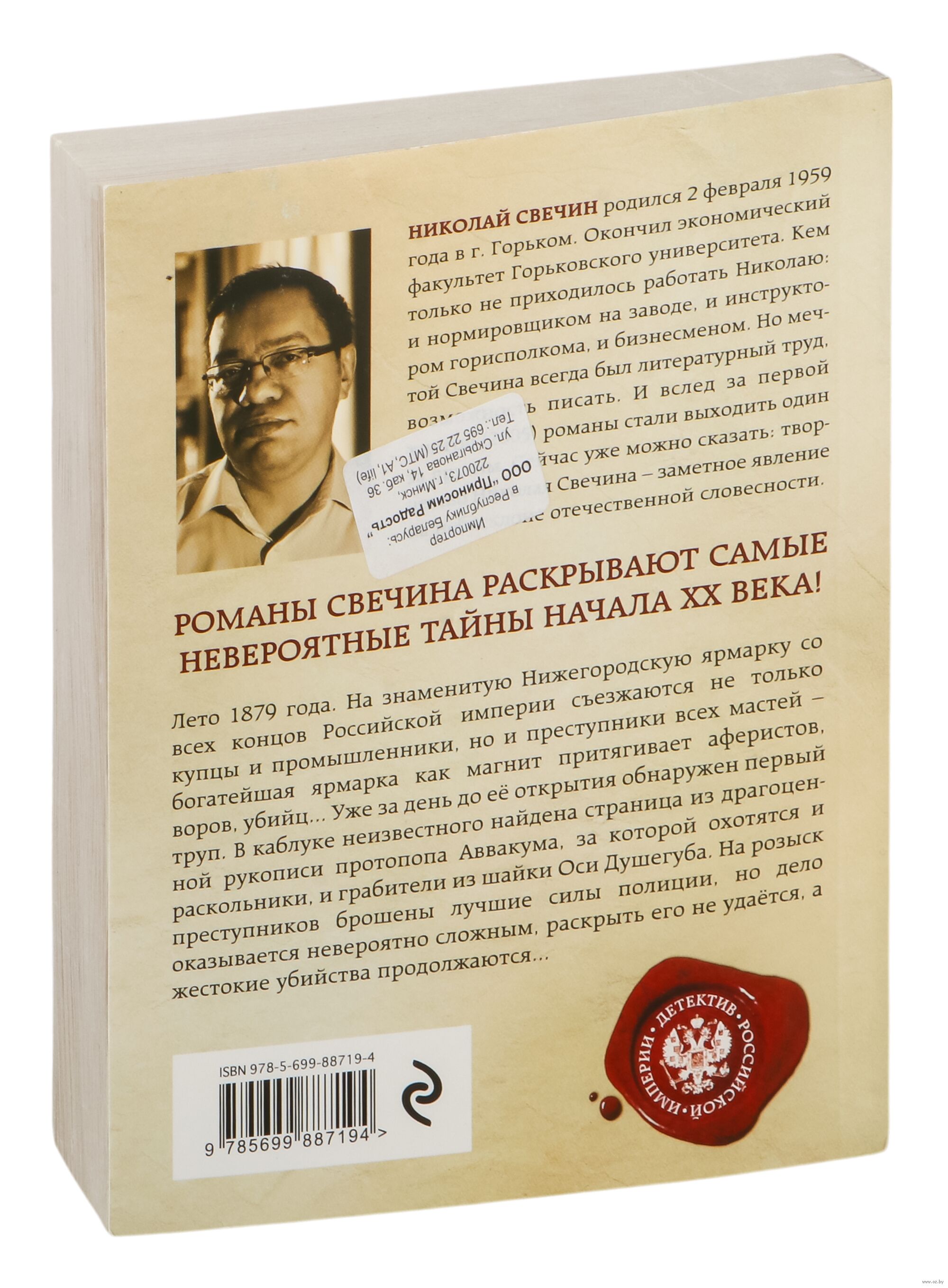 Лето 1879 года. На знаменитую Нижегородскую ярмарку со всех концов Российской Империи съезжаются не только купцы и промышленники, но и преступники всех мастей – богатейшая ярмарка как магнит притягивает аферистов, воров, убийц... Уже за день до её открытия обнаружен первый труп. В каблуке неизвестного найдена страница из драгоценной рукописи протопопа Аввакума, за которой охотятся и раскольники, и грабители из шайки Оси Душегуба. На розыск преступников брошены лучшие силы полиции, но дело оказывается невероятно сложным, раскрыть его не удаётся, а жестокие убийства продолжаются...